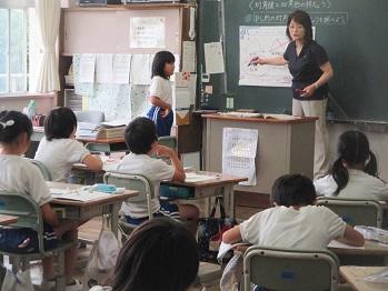 本年度から、テーマを『すべての児童が「わかる」「できる」授業づくり~ユニバーサルデザインの視点を取り入れて~』として校内研究を進めています。これまで、ユニバーサルデザインの視点に立った授業づくりについて、基本的な内容を全職員で学んできましたが、それを実際の授業づくりに具体的に生かすために、「授業研究」を行う段階に入りました。今日はその1回目として、2校時目に、3年2組助川教諭による国語科の「研究授業」を行いました。今回も、市総合教育センターの橋本指導主事においでいただき、授業後にご指導いただきました。今後、教務主任も含めて、全職員がこのテーマに基づいて研究授業を行います。