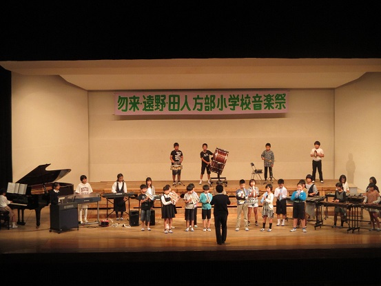 今日は、勿来市民会館で「勿来・遠野・田人方部音楽祭」が行われました。本校4年生も全員そろって参加しました。演奏順がいちばん最後だったので、「集中力が持つかな?」と心配しましたが、練習どおりの演奏をすることができました。各楽器、特に打楽器とメロディのバランスもちょうどよく、丁寧な演奏が光りました。途中、客席からの手拍子も作戦通りいただくことができました。保護者の皆様には残念ながら聴いていただけなかったのですが、11月17日(土)の「学習発表会」で再演する予定です。どうぞ楽しみにお待ちください。