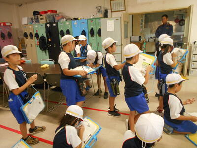 お話を聞いた後、登校班ごとに、通学路で危険な場所を担当の先生方と確認しながら、下校しました。