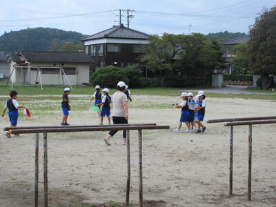大休憩(10:00~10:25)には、1年生も校庭に出て元気に遊んでいました。