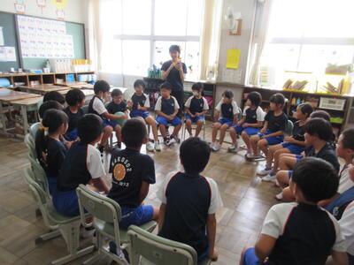 時間になると、上級生が優しくてをつないで、一緒に教室に戻っていきました。