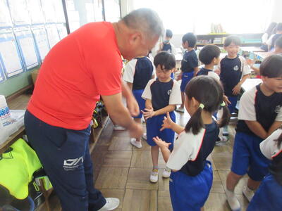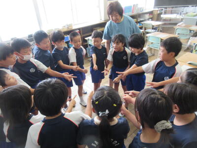2024年9月10日 11時00分今日は、月に1度のふれあいタイムです。「ラッキー7」を行いました。グーなら0、指の数1~5を出して、みんなの合計が7になったら、ラッキーというゲームです。みんなが何を出すか考えて、自分はこれを出そうと決めて行う楽しさがあります。学級全員の合計が7になったところもありました。7にならなかった学級は次回がんばってください。