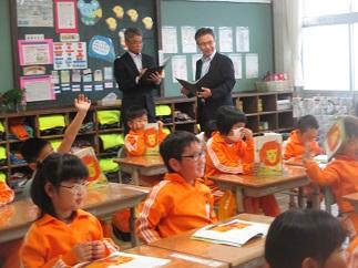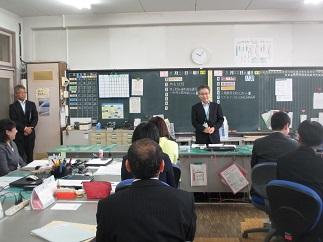 今日は、いわき教育事務所の林所長と塚本業務次長兼学校教育課長が本校を訪問され、全学級の授業を参観するとともに、全職員に対してご指導をいただきました。児童が落ち着いて学習に取り組んでいることや新学習指導要領の趣旨を生かした教育目標の設定など、おほめの言葉をいただきました。今後も、教育活動の充実と不祥事根絶に向けて、全職員で取り組んで参ります。