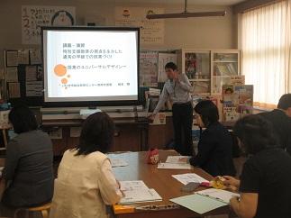 本校では、今年度から新たな校内研究のテーマを、「すべての児童が「わかる」「できる」授業づくり~ユニバーサルデザインの視点を取り入れて~」としました。これまで2回にわたって、ユニバーサルデザインの定義や特別支援教育との関連等の研修をしてきましたが、今日は、そのまとめとして、いわき市総合教育センター教育支援室指導主事の橋本 勉先生においでいただき、「特別支援教育の視点を生かした通常の学級での授業づくり~授業のユニバーサルデザイン~」と題して講義をいただきました。橋本先生には、これまでの校内研修にもご参加いただき、ご指導をいただきました。これから具体的な授業研究を進めていきますが、教育支援室の先生方には、今後も継続してご指導をいただきます。