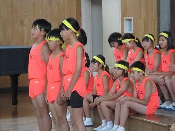 昨日の3校時目に、6月19日(水)に行われる「いわき市陸上競技大会第4ブロック大会」に出場する6年生の「激励会」を行いました。本来であれば、校庭でいろいろな種目の競技の様子を見ることができたのですが、校庭のコンディションが悪く、体育館で実施しました。それでも、走り高跳びの様子を全校児童で見ることができました。