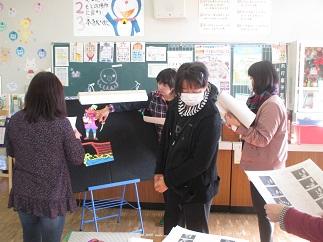 今日は、図書ボランティアの方々が図書館に集まり、クリスマスの「お話会」に向けて、パネルシアターの練習をしました。お忙しい中、本当にありがとうございます。