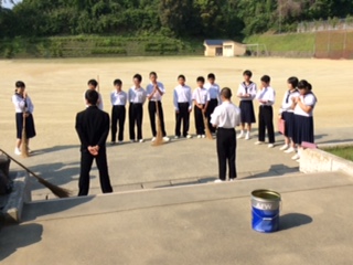 毎日、校舎前を清掃しています。担当は、週単位の週番とあいさつ当番です。