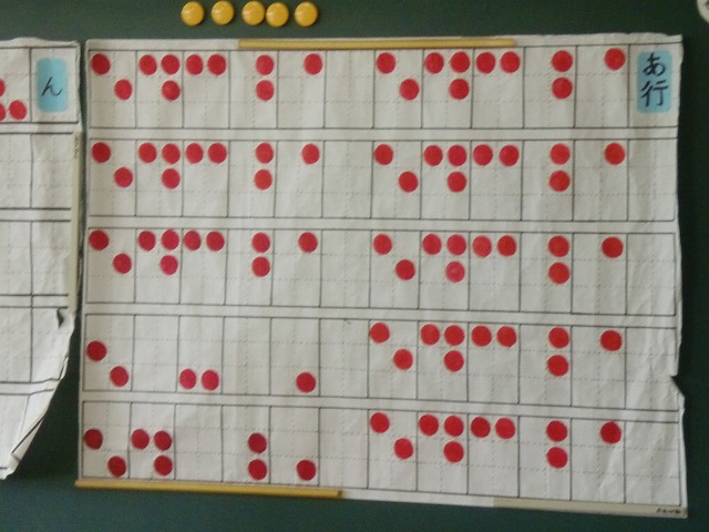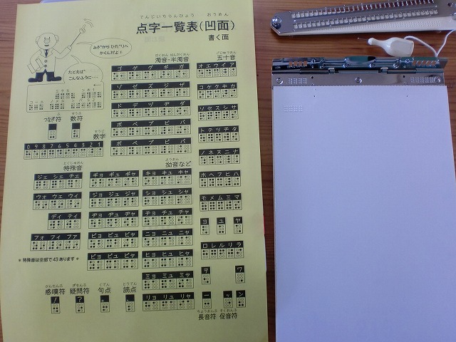 点字セットをお借りして、ひらがらの打ち方を教えていただき、実際に自分の名前も打ちました。