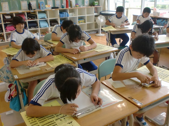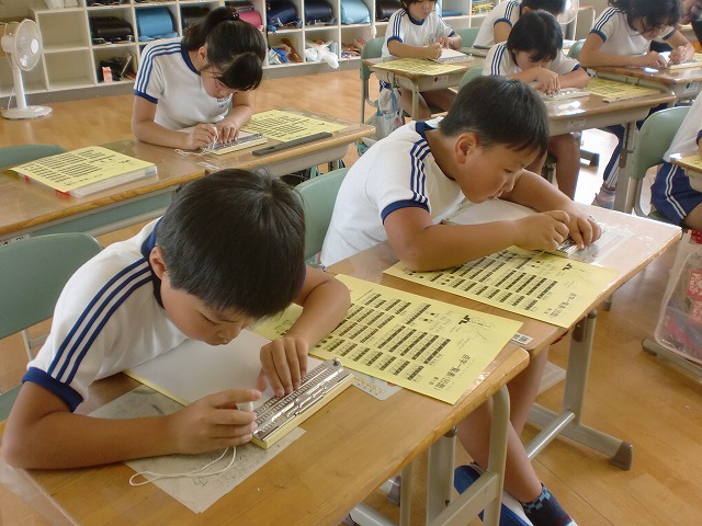 点字の打ち方を通して、福祉教育について4年生は学習することができました。