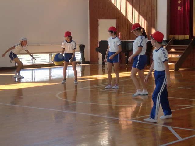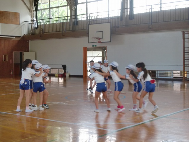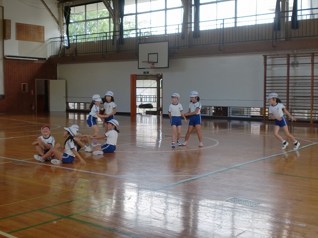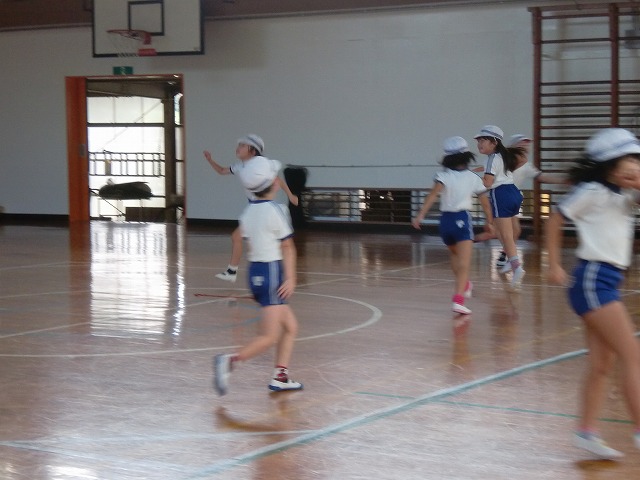 2年生の体育です。みんな仲良く元気に動き回っています。