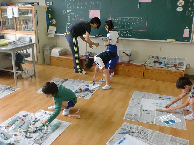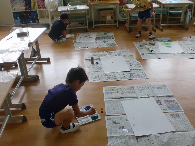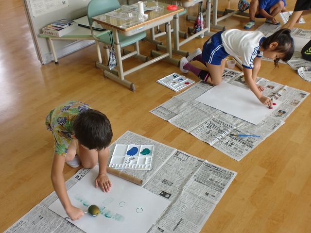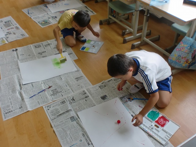 形や色を工夫して、絵の具でいろいろな写し方をしました。