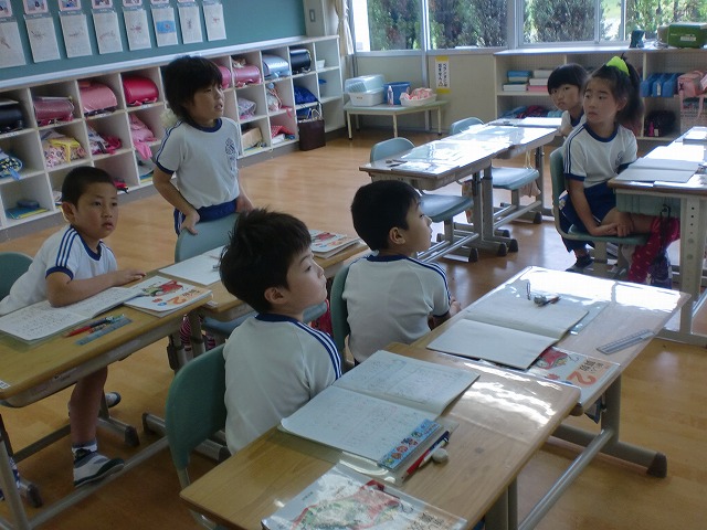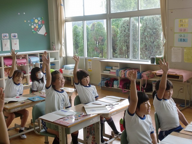 先生の質問にも、いつものように元気よく挙手して答えています。
