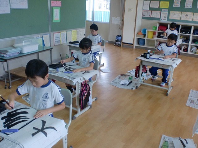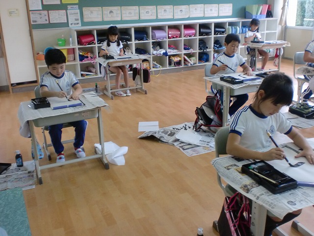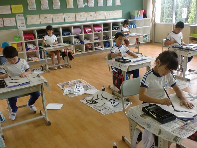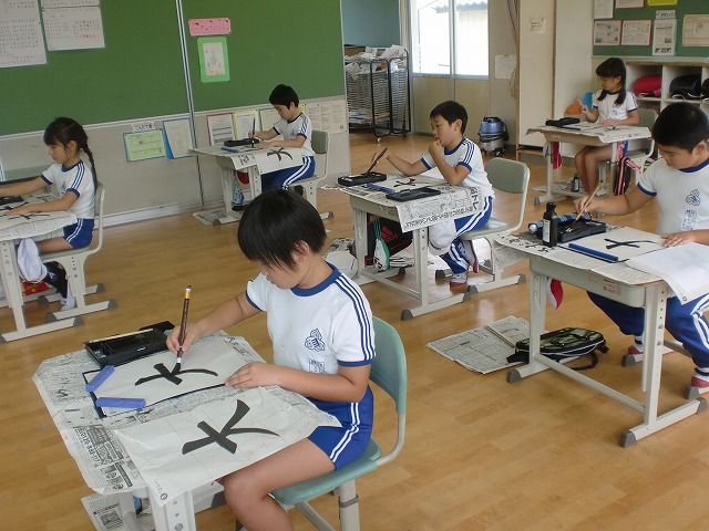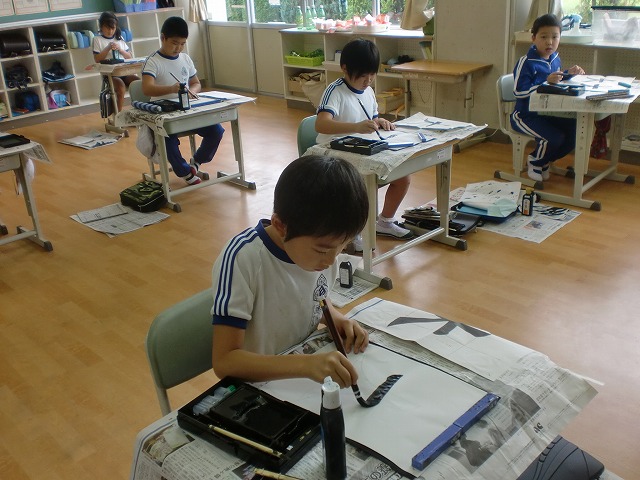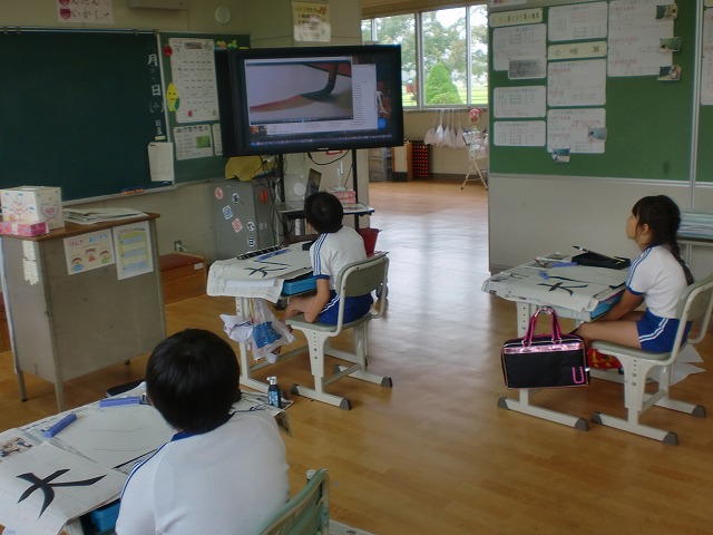 今日は、デジタル教科書で確認し、右はらいと左はらいの練習をしました。