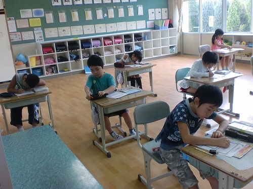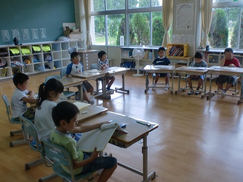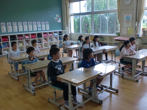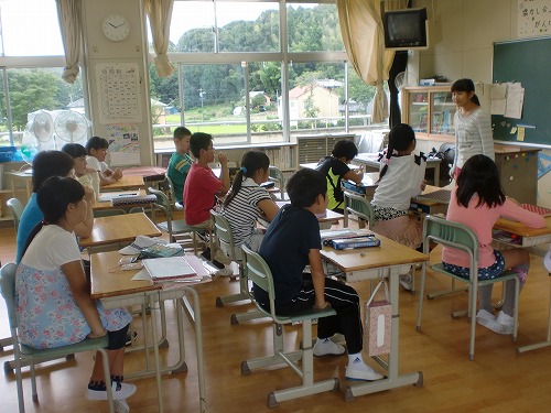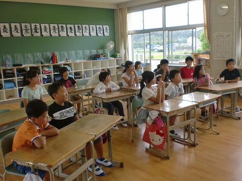 また、日本人の活躍(こうのとりのISSのドッキング、スポーツ等)や、戦後70年を経過しての平和の大切さについても話しました。子どもたちも、夏休み明けでしたが、真剣に話を聞いていました。