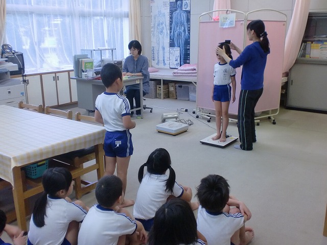 今日から各学年ごとに身体測定を行いました。