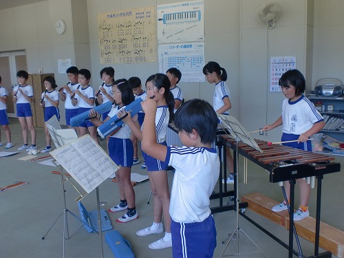 みんなで心を合わせて、先生の指揮の下に一生懸命です。