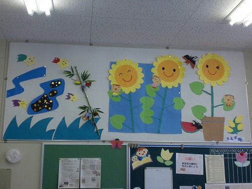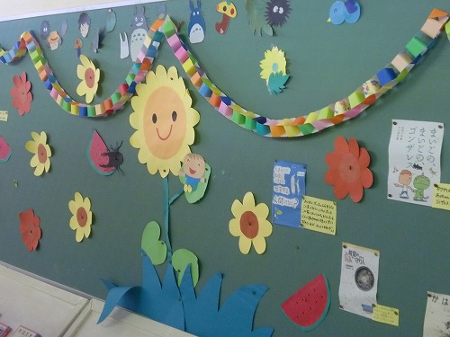 廊下の掲示物です。ブックママの皆様にいつも掲示をしていただいています。