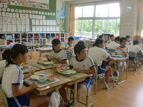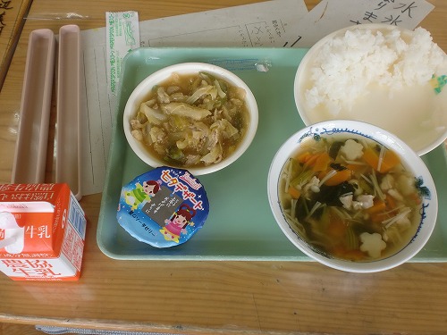 メニューは、ごはん、すまし汁、ホイコーロー、牛乳、たなばたゼリーです。