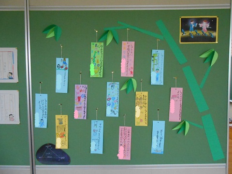 ★ 星に願いを ★ 来週は七夕です。各学級に子ども達の願い事が掲示されています。