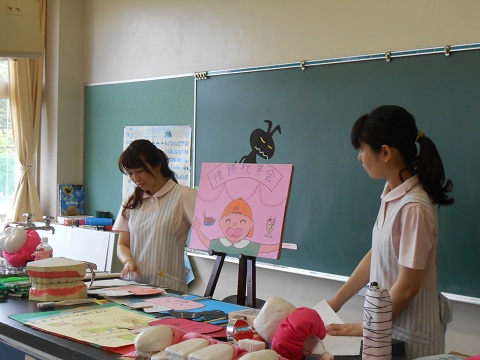 中央歯科医院の歯科衛生士さん(2名)を講師にお迎えし、全学年で「歯科保健指導」を行いました。
