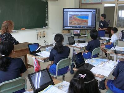 6年生は、外国語科で、コーデリア先生と「Where do you want to go?」「I want to go to 〇〇」とたくさん会話をしていました。そこに行けば見れるもの、食べれるもの、体験できることなどを紹介し合っていました。