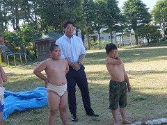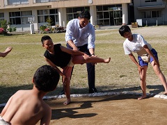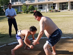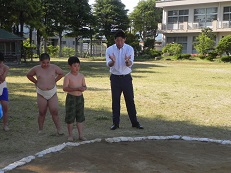 4日(月)に、大相撲の放駒親方(元関脇玉乃島)が来校され、今月と来月に出場する学童相撲大会に向けて、本格的な指導をしてくださいました。
