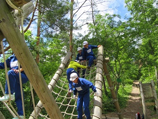 フィールドアスレチックは難しい設定もありましたが、グループで協力して楽しむことができました。カヌー体験もあっという間に慣れ、何回もチャレンジすることができました。