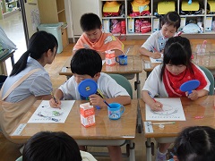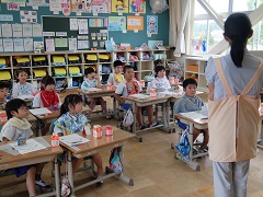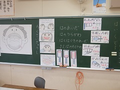18日(月)に、養護教諭による1年生の歯科指導がありました。