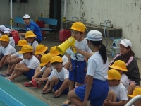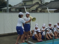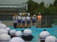 チャレンジタイムに全児童がプールサイドに集合して、プール開きを行いました。水泳学習の意義や安全面に関するお話の後、各学年の代表児童によるめあての発表がありました。どの発表も具体的でしたね。今年もそれぞれの目標に向かってがんばりましょう。