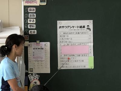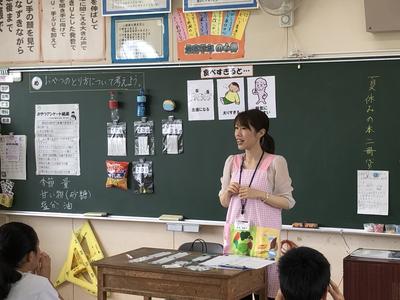 2019年7月12日 11時06分4年生に引き続き、栄養教諭 阿部先生に講師としてきていただき、6年生でも食に関する授業を行いました。子どもたちは、「上手なおやつのとり方について考えよう」という「めあて」をもって学習しました。おやつの役割として「3食の食事で不足しがちな栄養を補う役割があること」やおやつの摂り方、理想のおやつについて、これまでの自分をふり返りながら学びました。