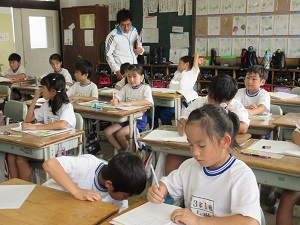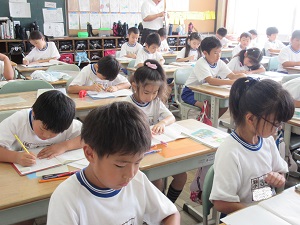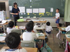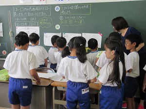 11日(月)に3年1組の研究授業が行われました。授業は算数で、ねらいは、既習の九九をもとに、2位数×1位数の計算の仕方を理解することでした。子どもたちは、図を用いたり、たし算にしたり、数を分けてかけ算にしたり、いろいろな方法を使って問題を解決することができました。