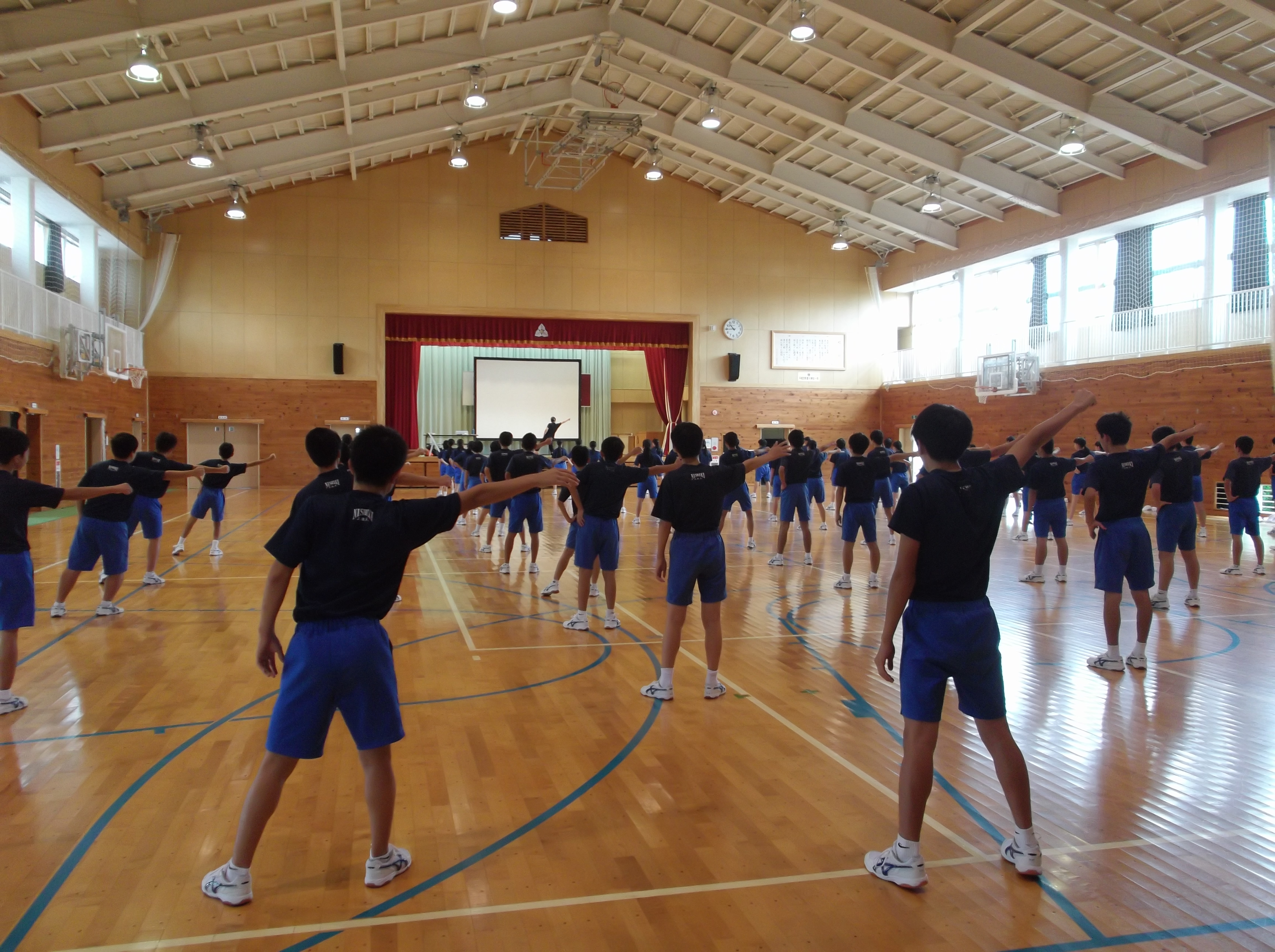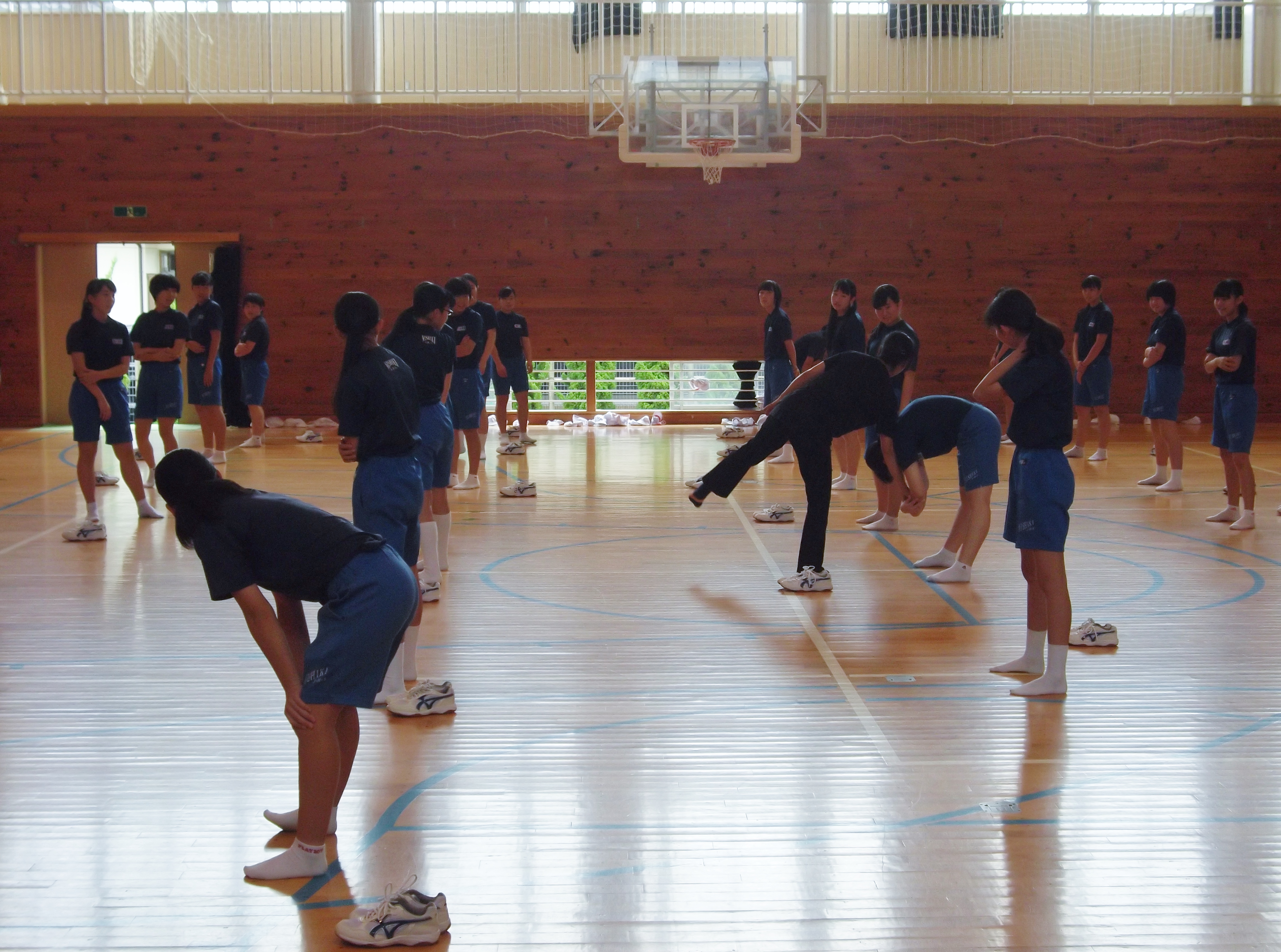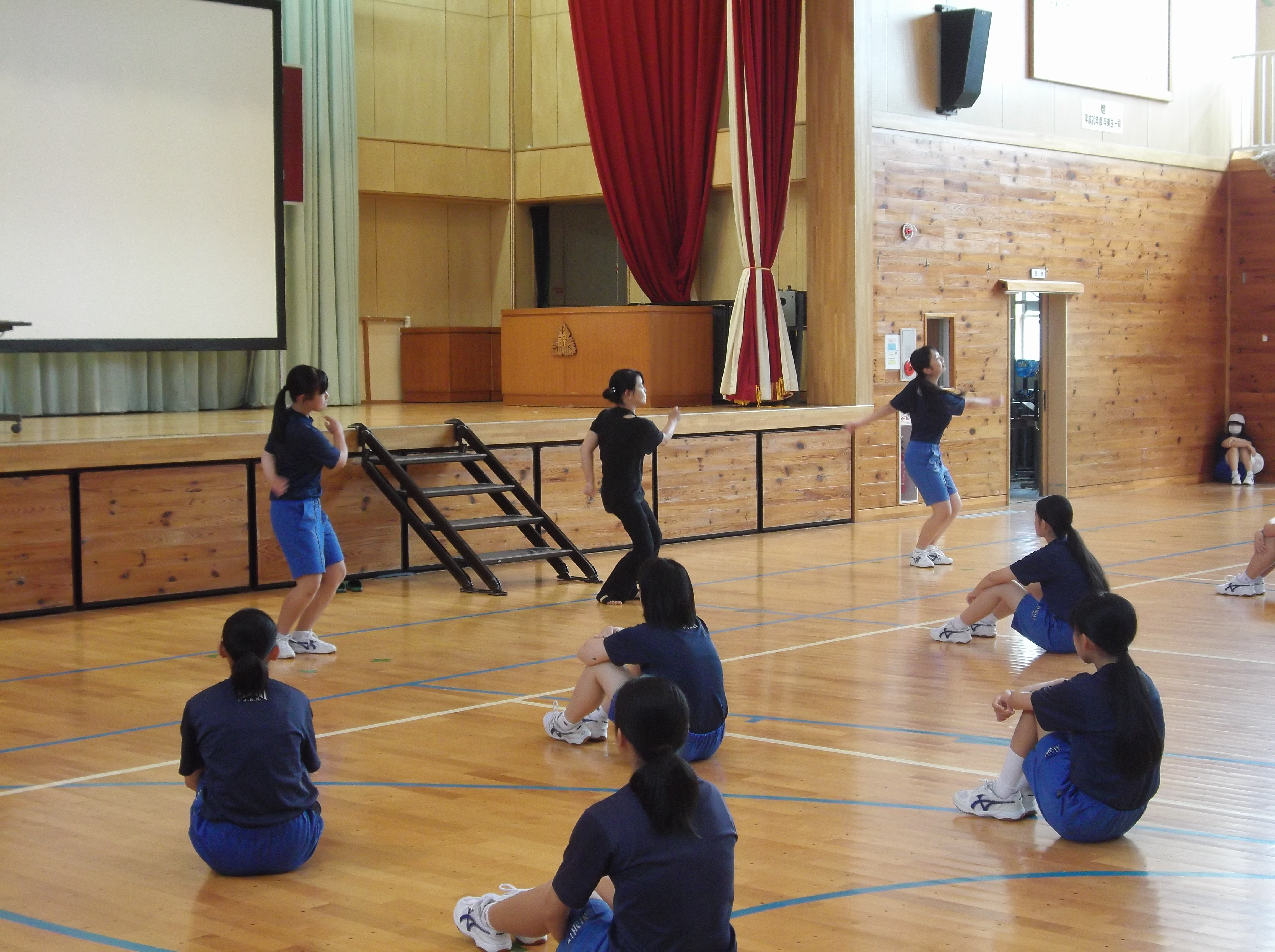 平成30年9月13日(木)、保健体育で、現代的なリズムダンスの授業を開始しました。講師として、ダンススタジオを主催している小松さんを迎え、10月上旬まで、毎週木曜日に、ヒップポップダンスを教えていただきます。本日は、1回目として、2・3年生 を対象に行いました。今後、全学年で実施して行きます。