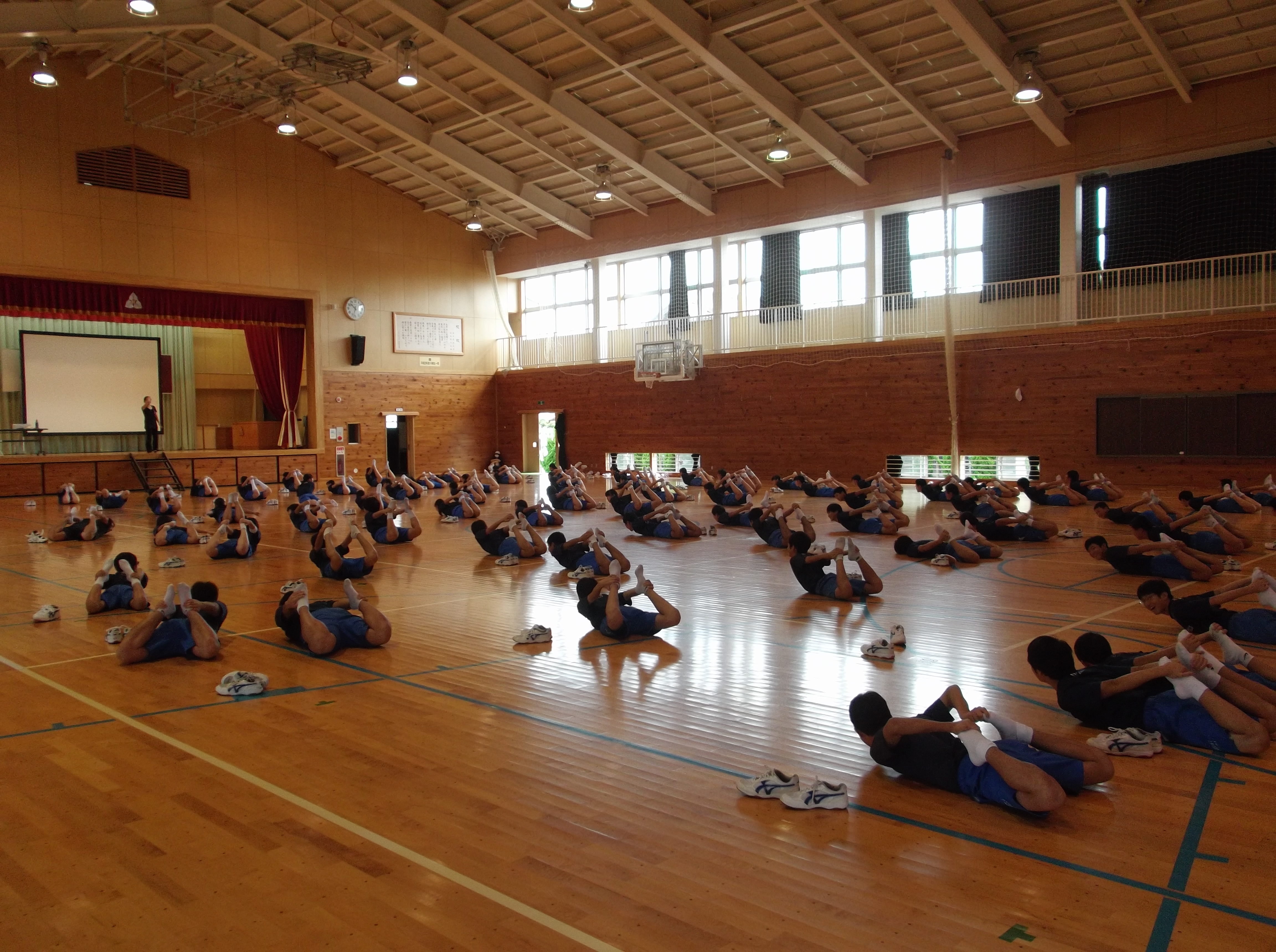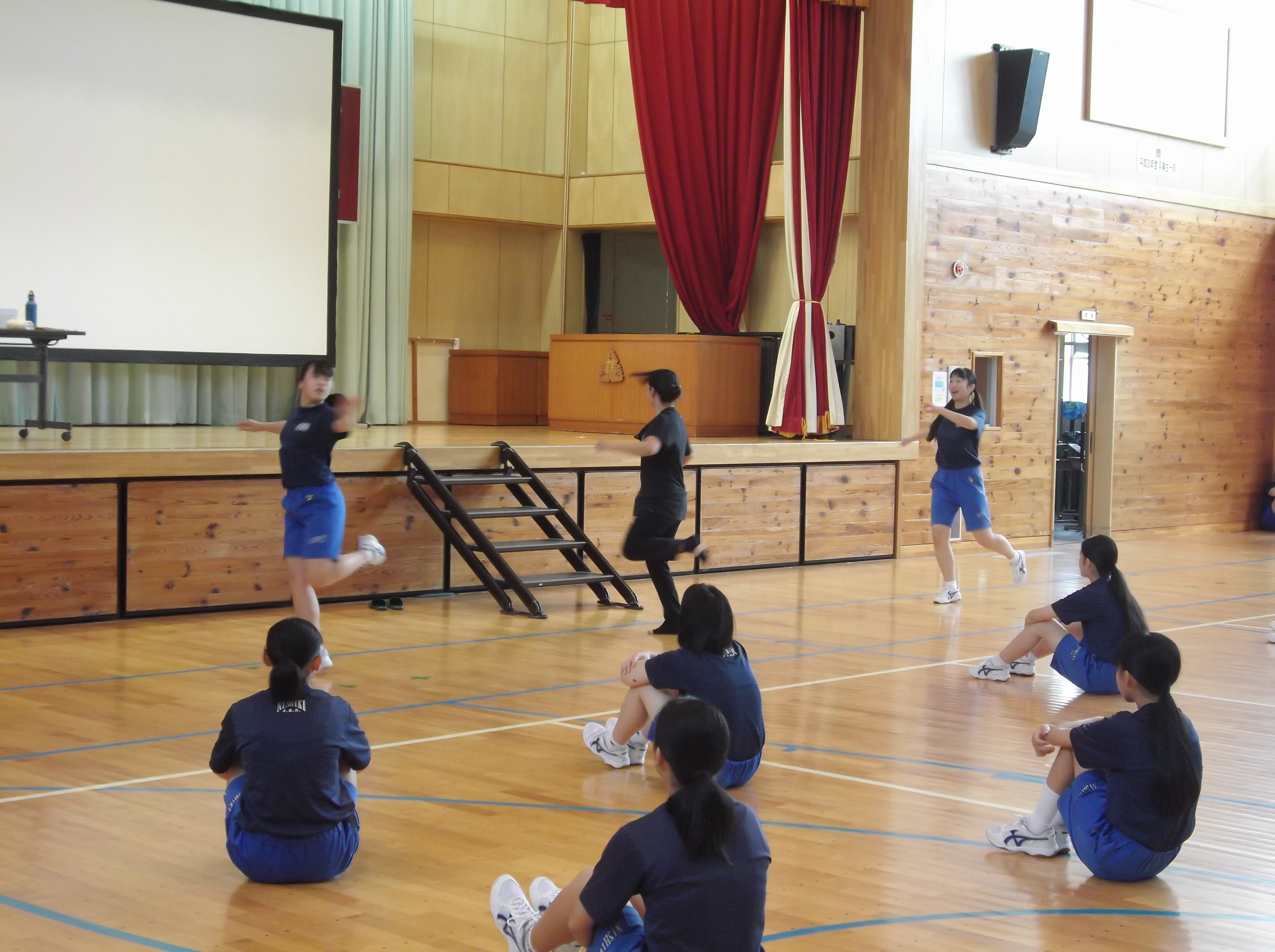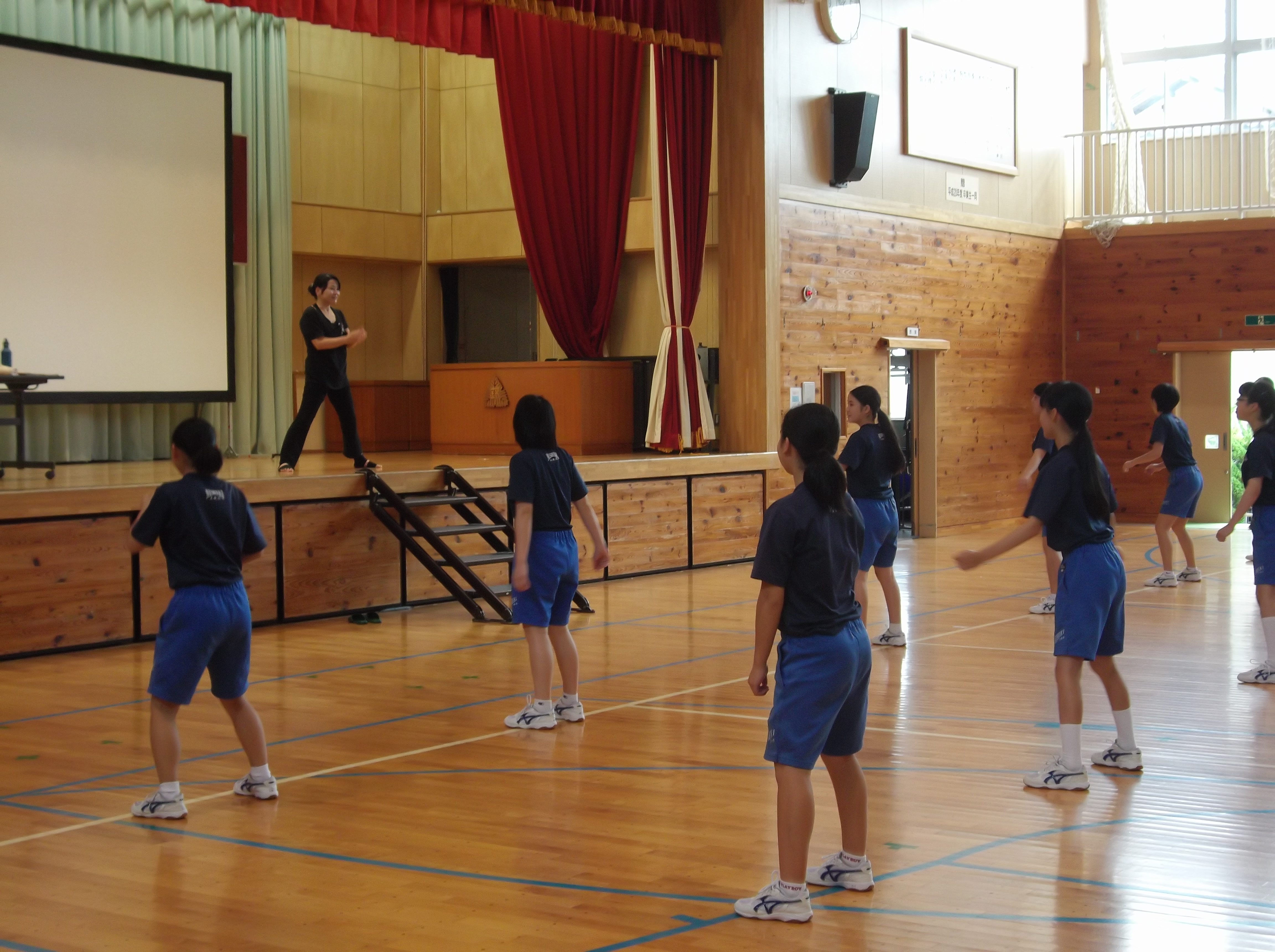 平成30年9月13日(木)、保健体育で、現代的なリズムダンスの授業を開始しました。講師として、ダンススタジオを主催している小松さんを迎え、10月上旬まで、毎週木曜日に、ヒップポップダンスを教えていただきます。本日は、1回目として、2・3年生 を対象に行いました。今後、全学年で実施して行きます。