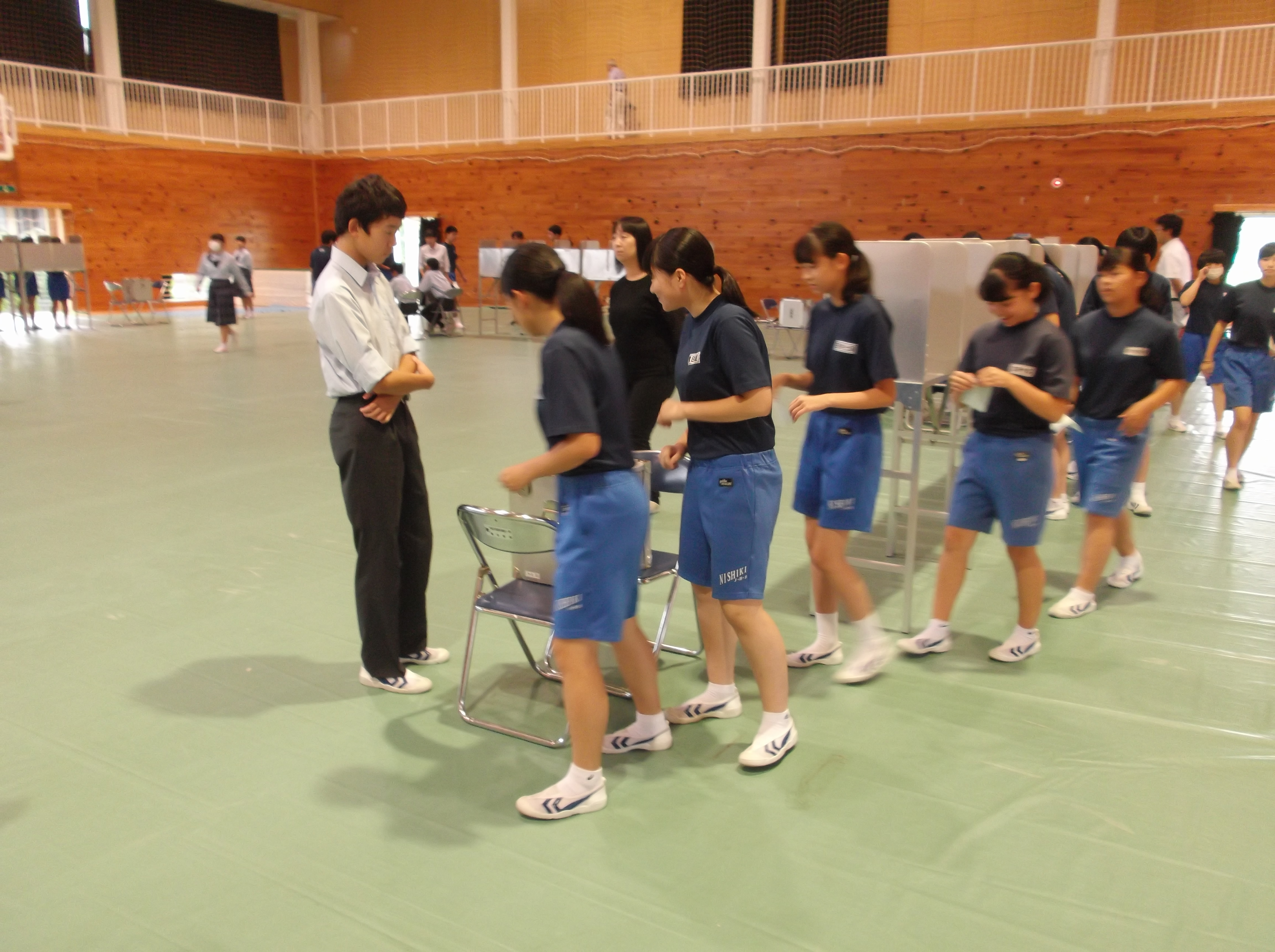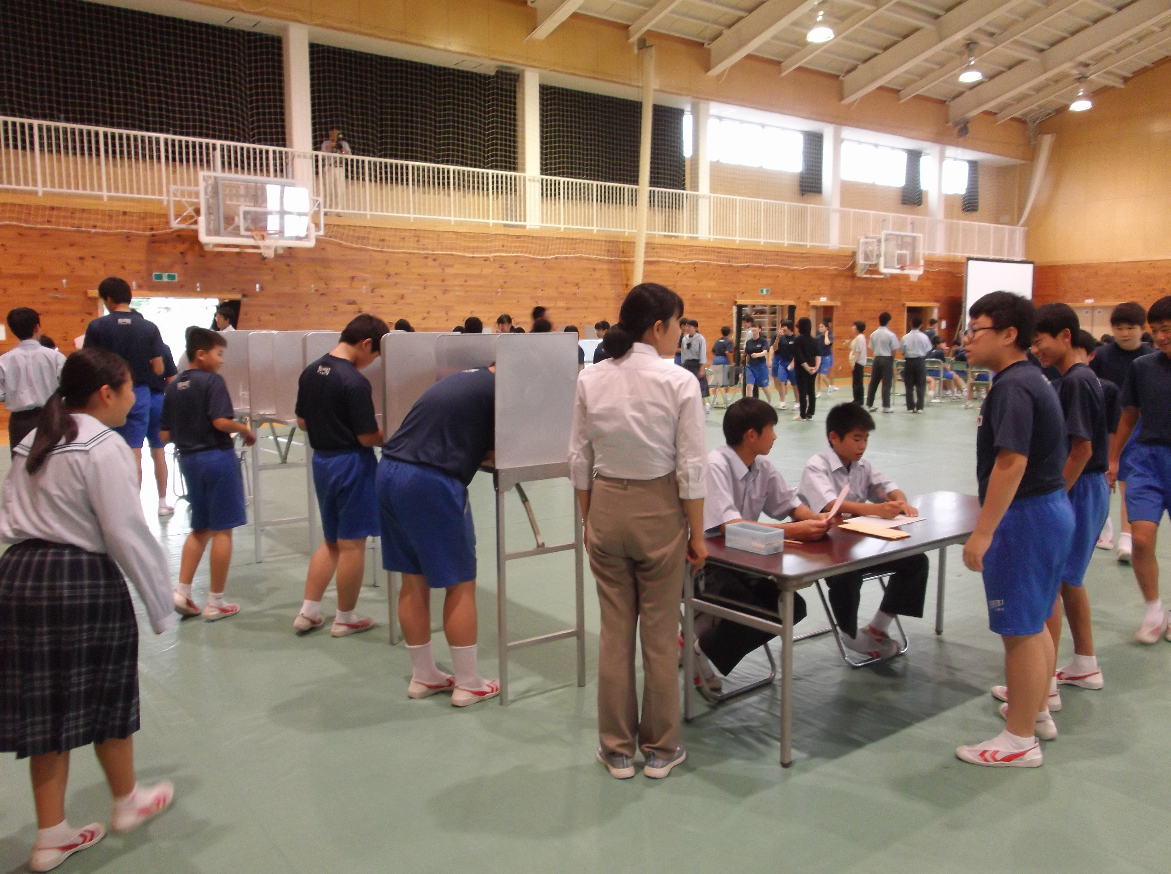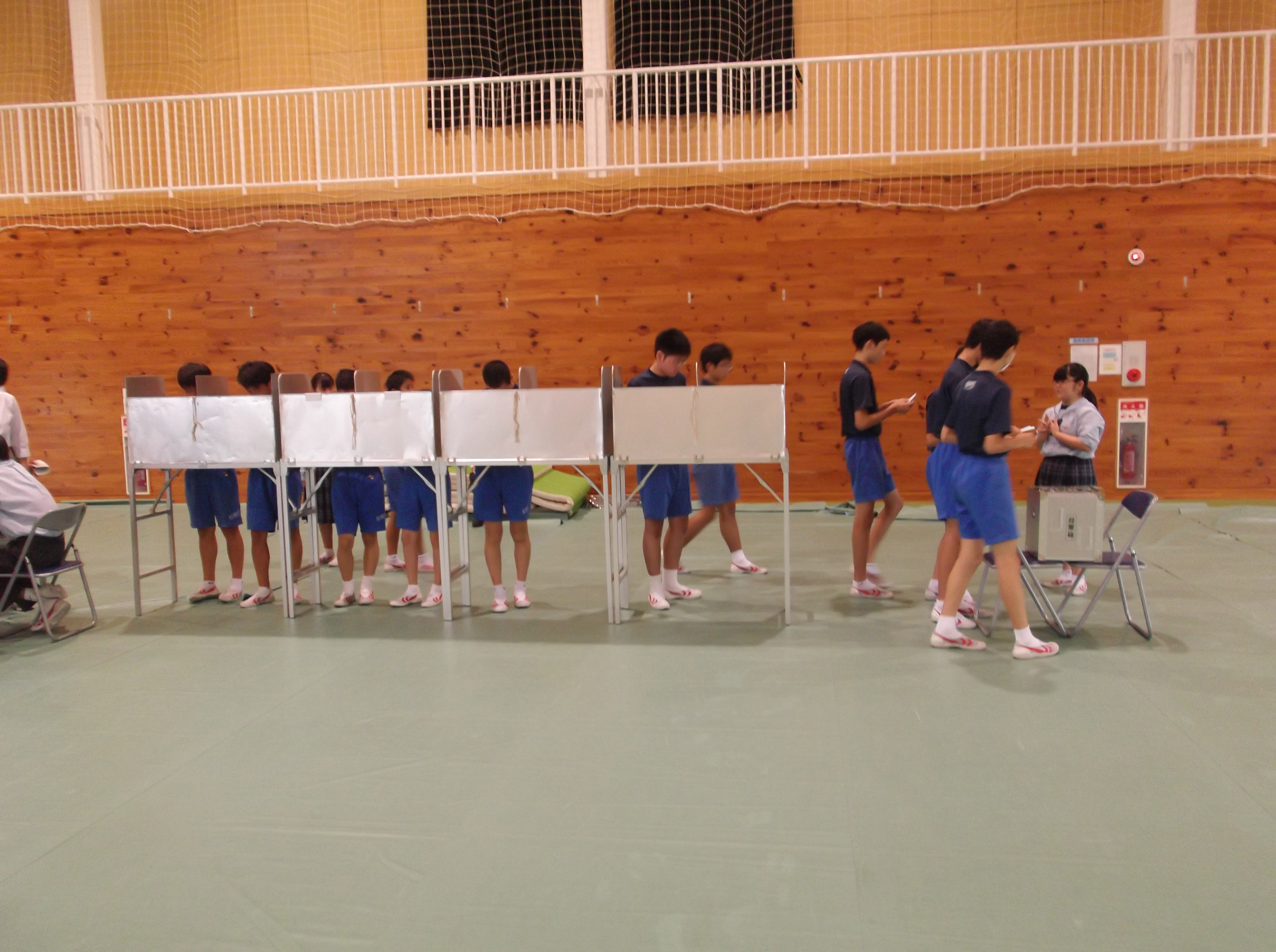平成30年9月13日(木)、後期生徒会役員選挙を実施しました。選挙にあたり、校長より、立候補者は錦中をリードする役割を果たしてほしい。素晴らしい錦中にするために、頑張ってほしいとの話がありました。立ち会い演説では、一人一人が公約を発表し、錦中をよくしたいという思いがよく伝わりました。投票では、実際の選挙で使用する記載台や投票箱を使い、選挙管理委員が受付や立ち会いを行いました。改めて、選挙の必要性、大切さを考える機会にもなりました。