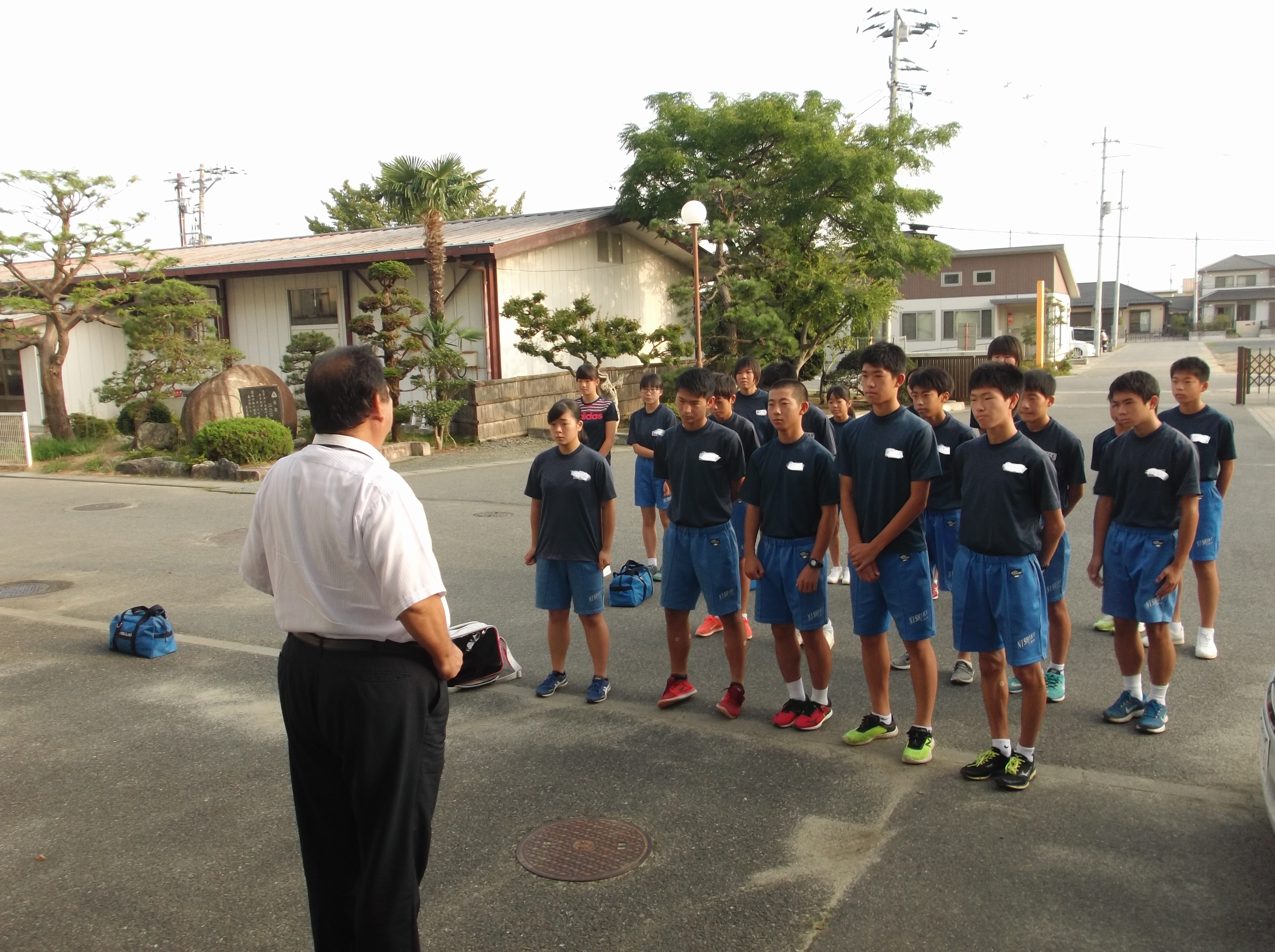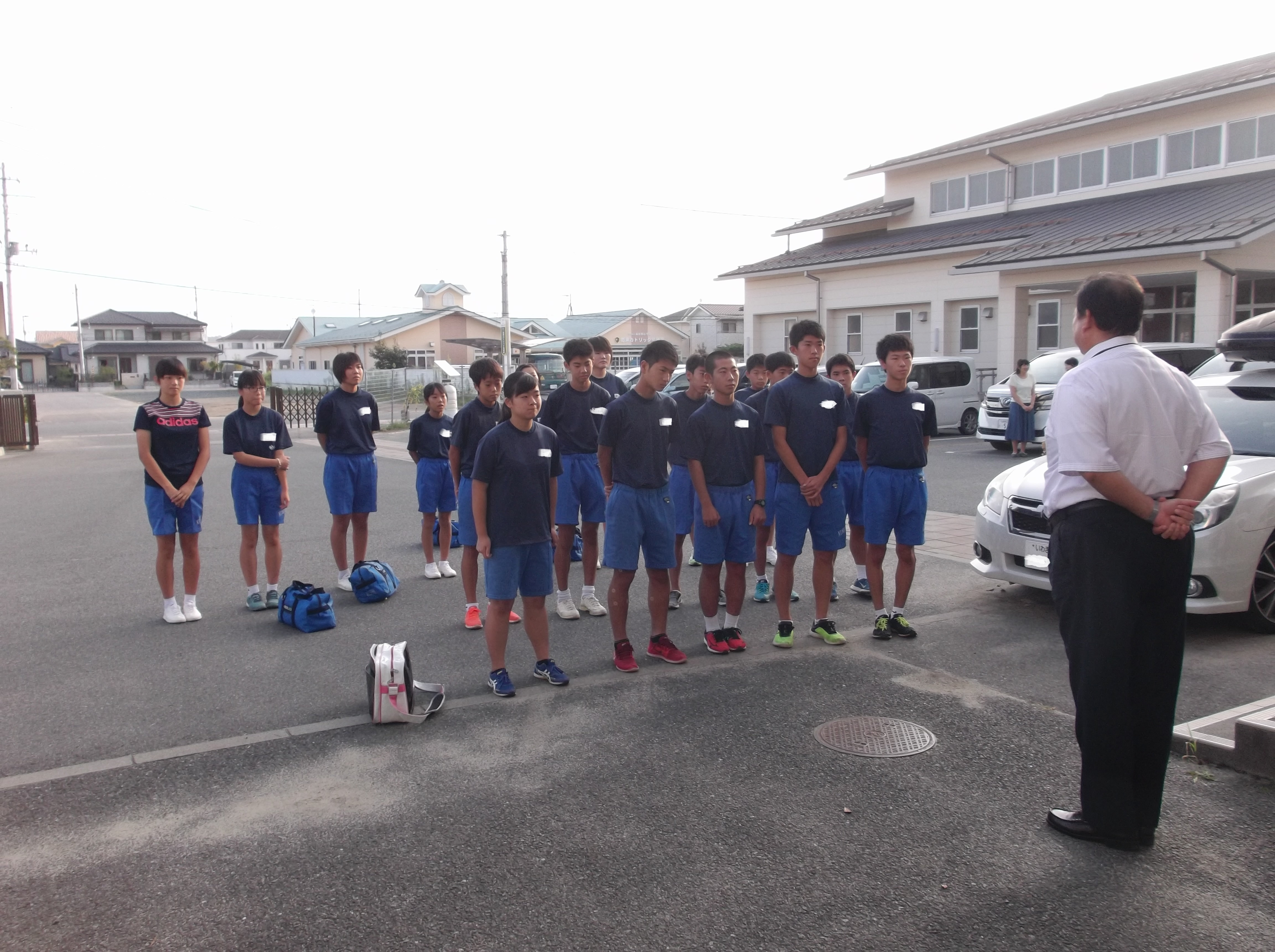 本日、平成30年9月6日(木)、いわき市中学校駅伝競争大会が開催されます。本校選手は、朝6時40分に競技会場へ出発しました。出発にあたり、顧問教師から日程や心構えの説明の後、校長が「精一杯の走りをしてほしい。」と激励しました。朝から、強い日差しが差していますが、天候に負けず、強い気持ちで、競技に臨んでほしいと思います。保護者の皆様、ご協力、応援ありがとうございます。
