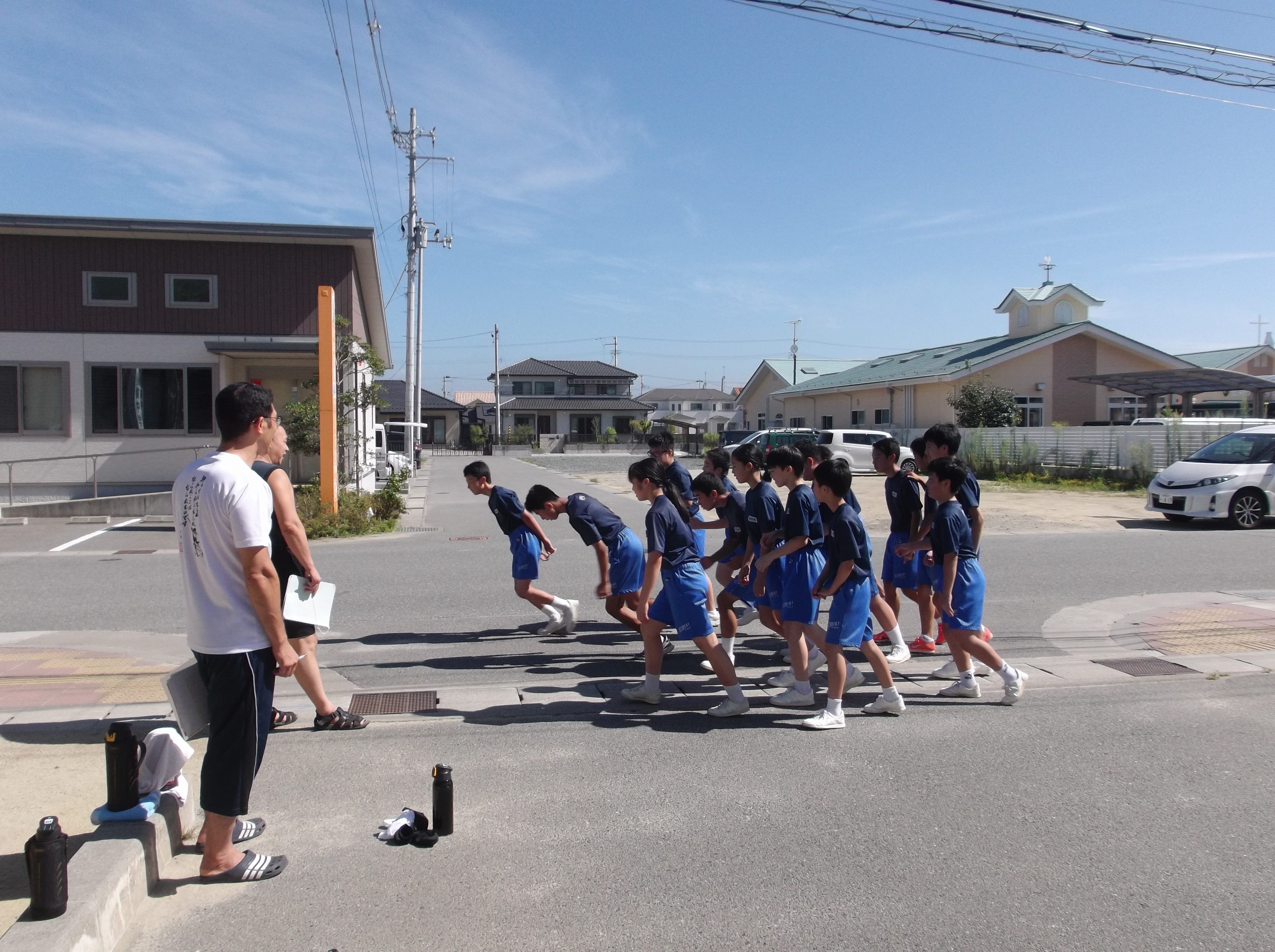 平成30年8月23日(木)の部活動の様子の一部を紹介します。ソフトボール部は、磐城農業高校の選手を迎え、練習試合を行いました。試合を通して、技術的なことだけでなく、競技に取り組む姿勢や態度など、多くのことを学んだようです。柔道部と剣道部は、体力づくりとして、校地の周りを走っています。毎日、タイムを計り、目標を持って取り組むことにより、記録も伸び、継続の大切さを実感しているようです。体育館の日陰では、市英語弁論大会に出場する生徒が、教科担任、ALTの指導のもと、練習していました。