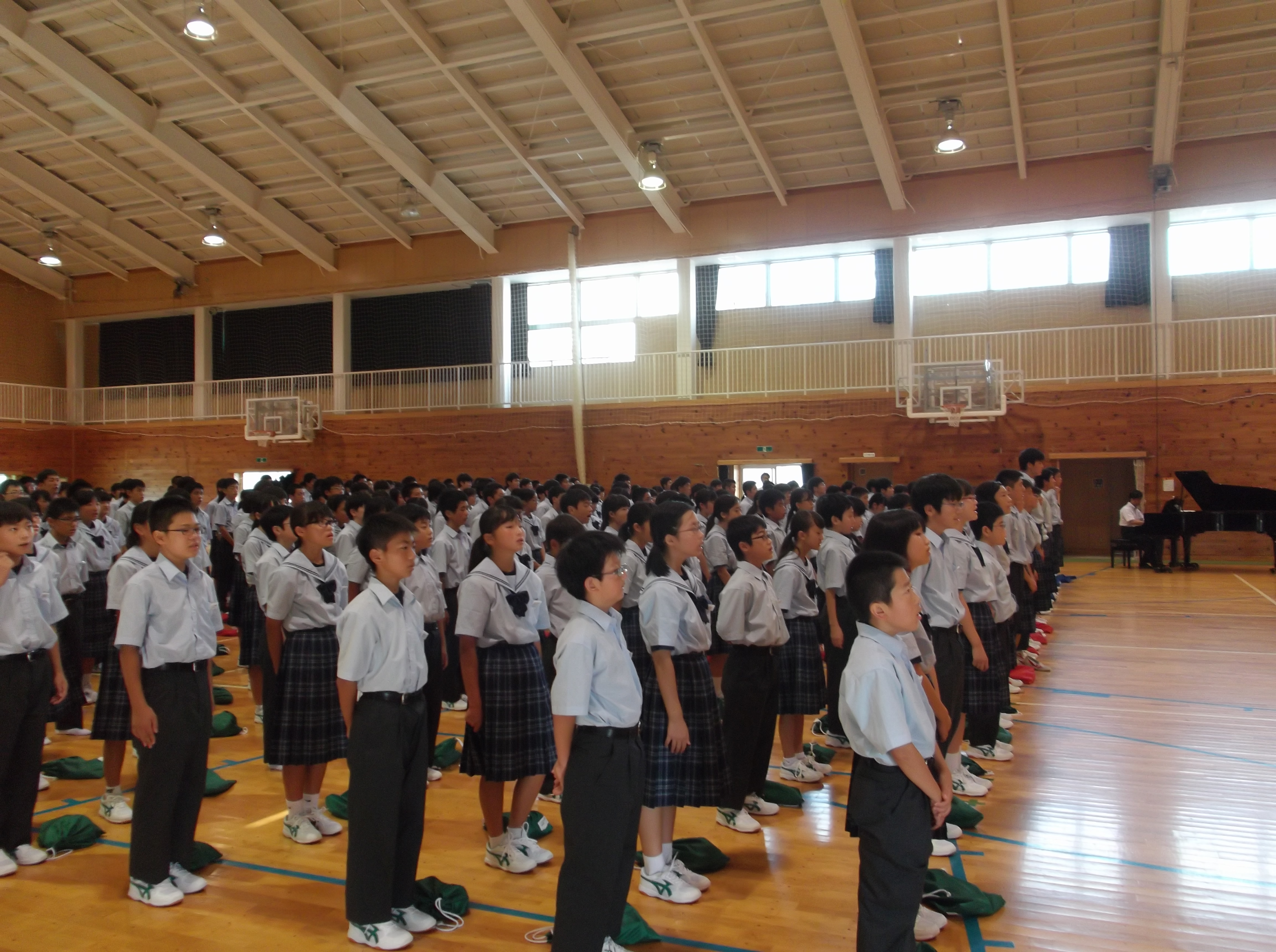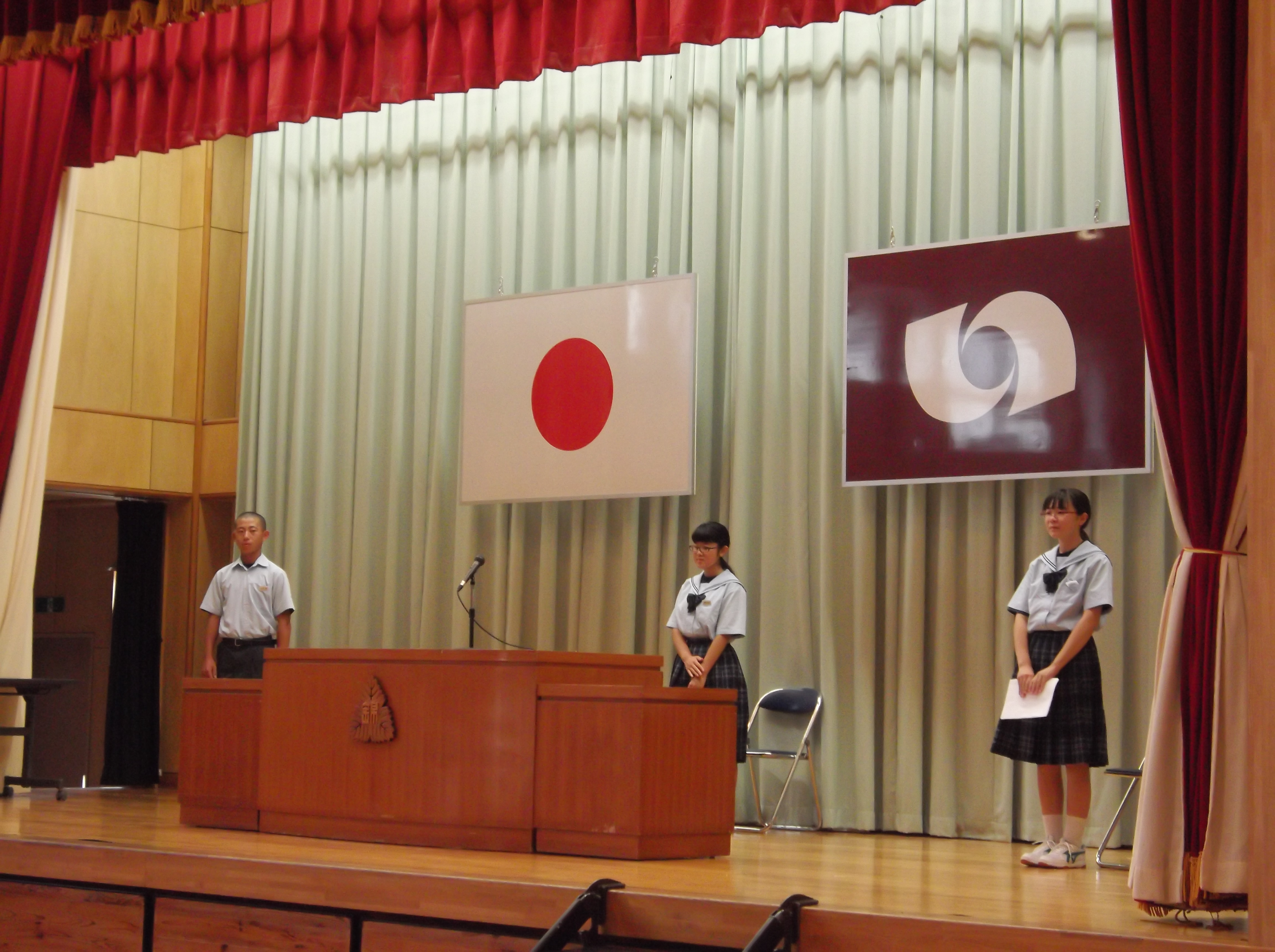 式では、校長式辞の後、校歌斉唱を行い、各学年の代表生徒が2学期の抱負を発表しました。