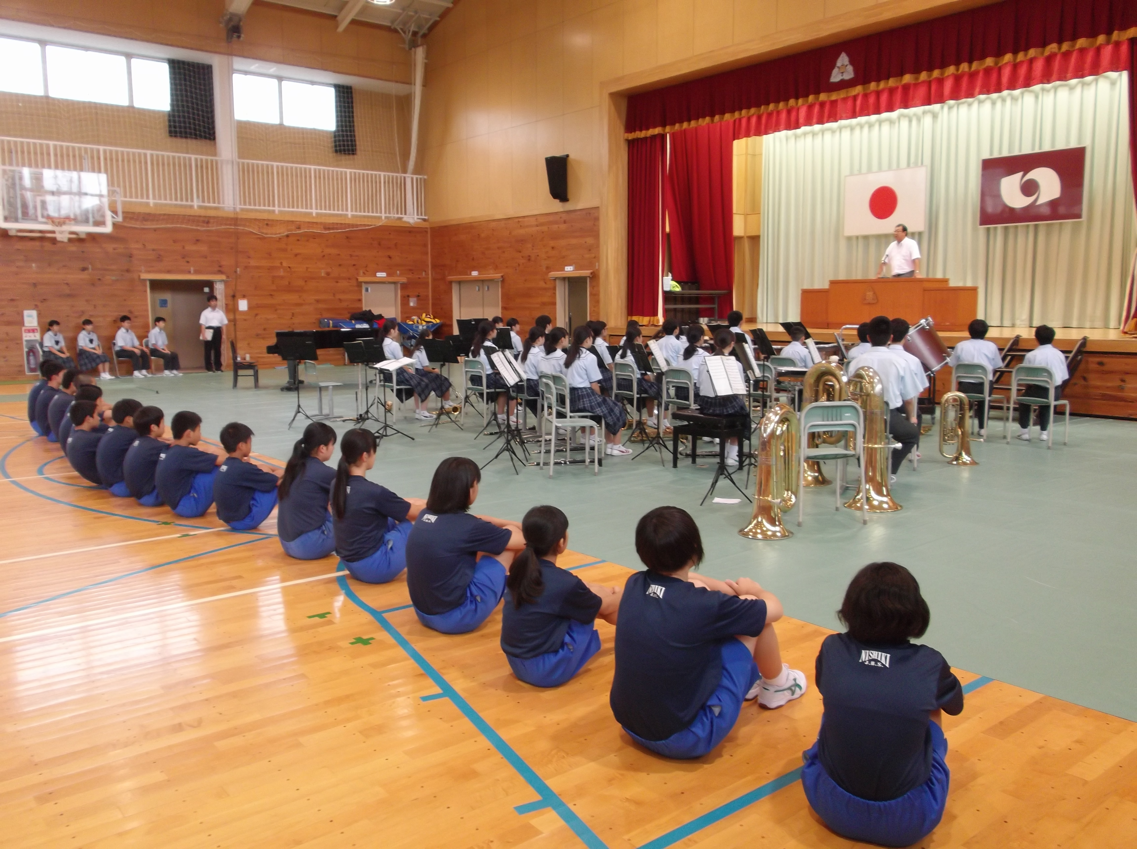 平成30年8月29日(水)の6校時に、駅伝と吹奏楽の激励会を行いました。全員で校歌斉唱後、校長から、「駅伝は、走っている時は一人でも、団体競技である。周りには一緒に練習してきた仲間がいる。自分の力を発揮してほしい。吹奏楽部は、支部、県大会と勝ち進んでの東北大会です。力を出しきれば、結果はついてくる。」と激励の言葉がありました。