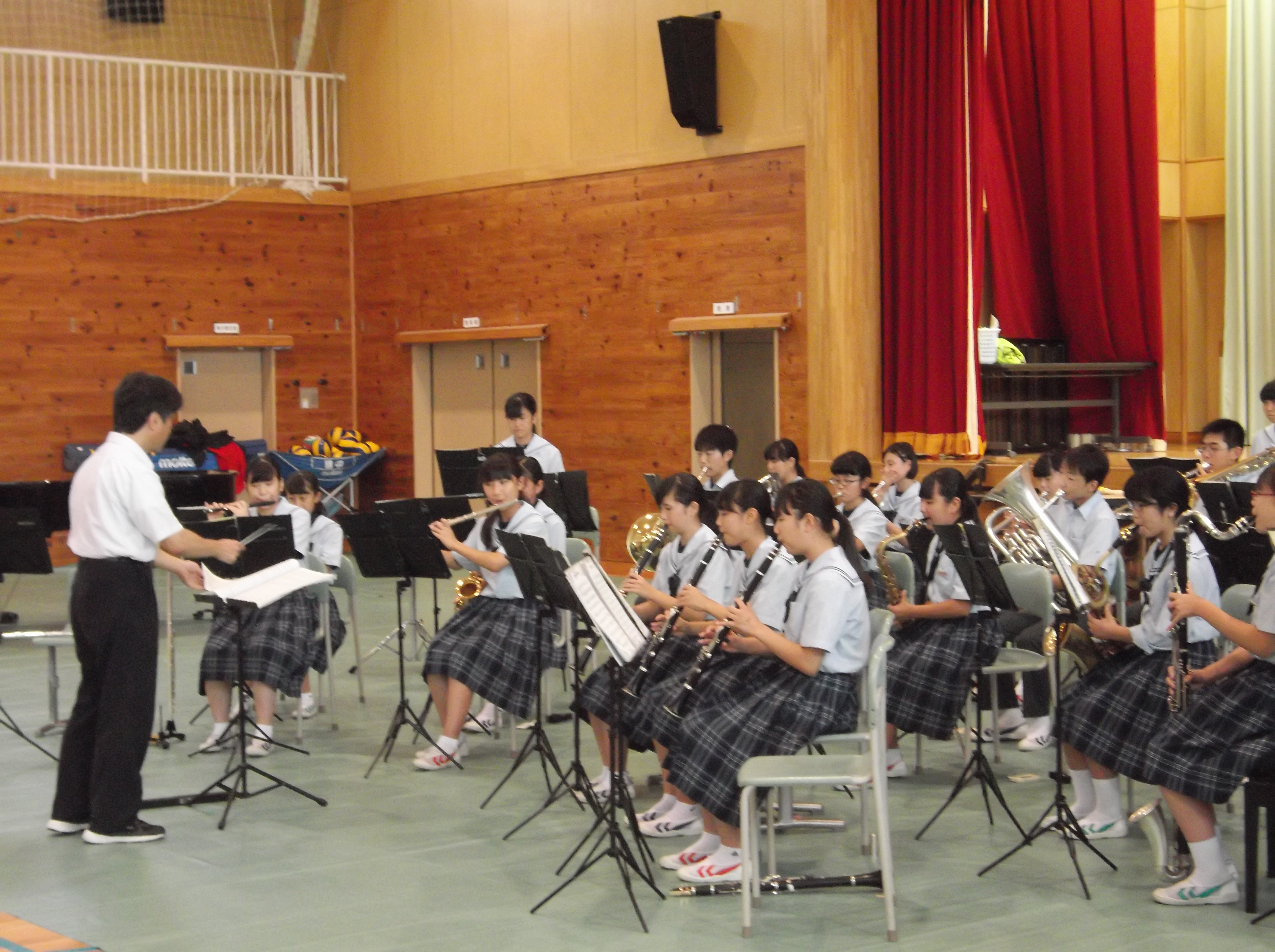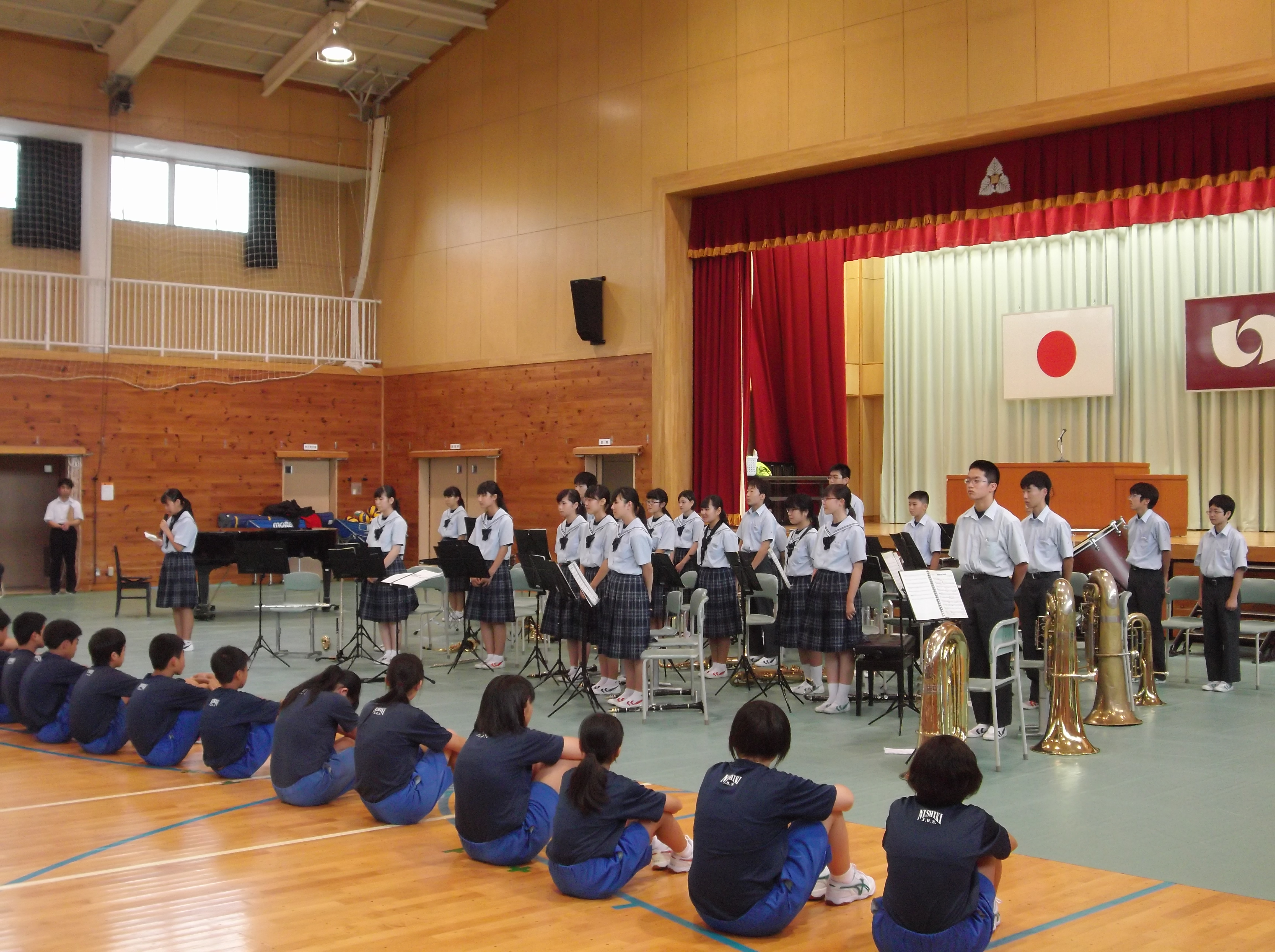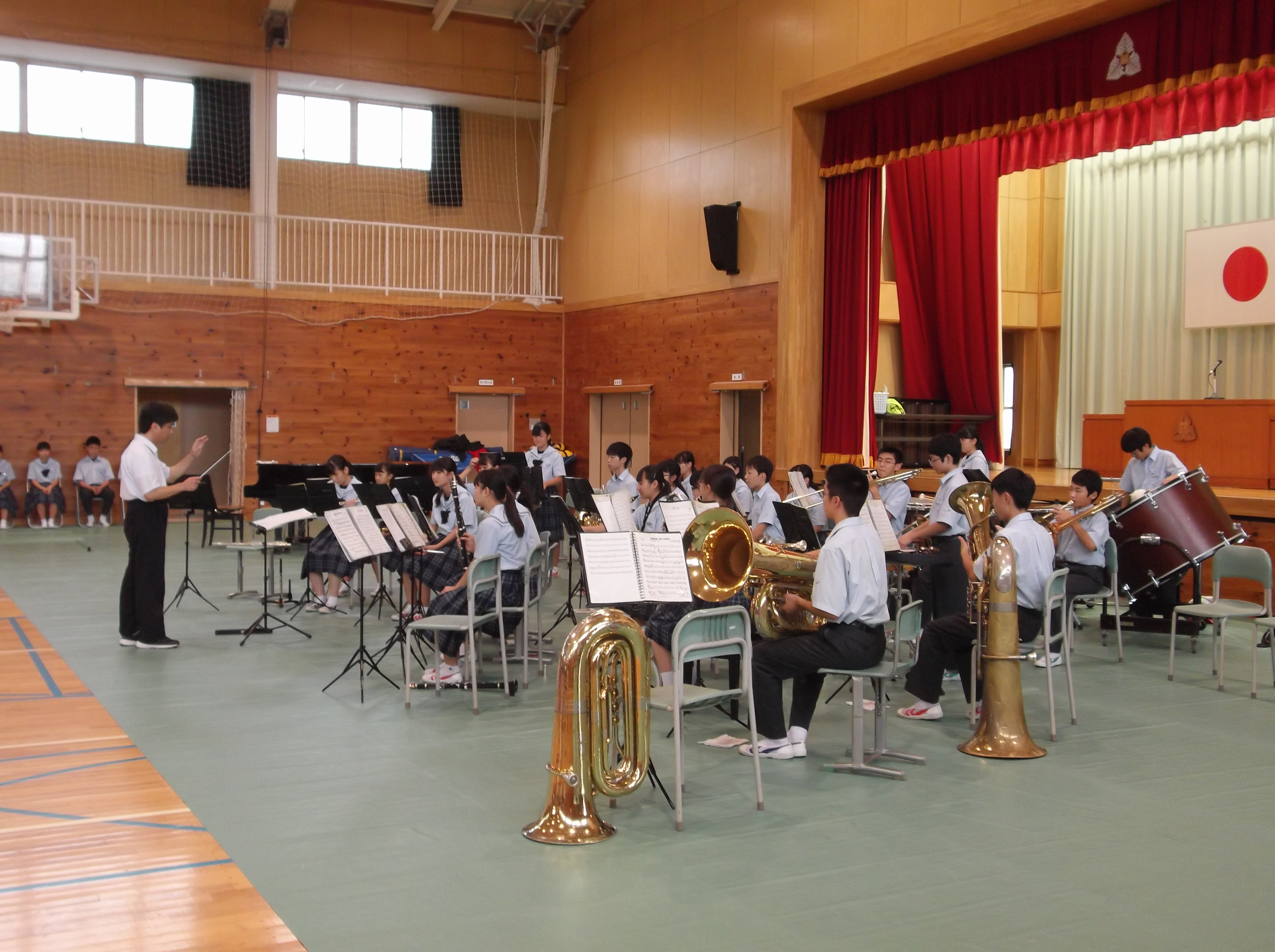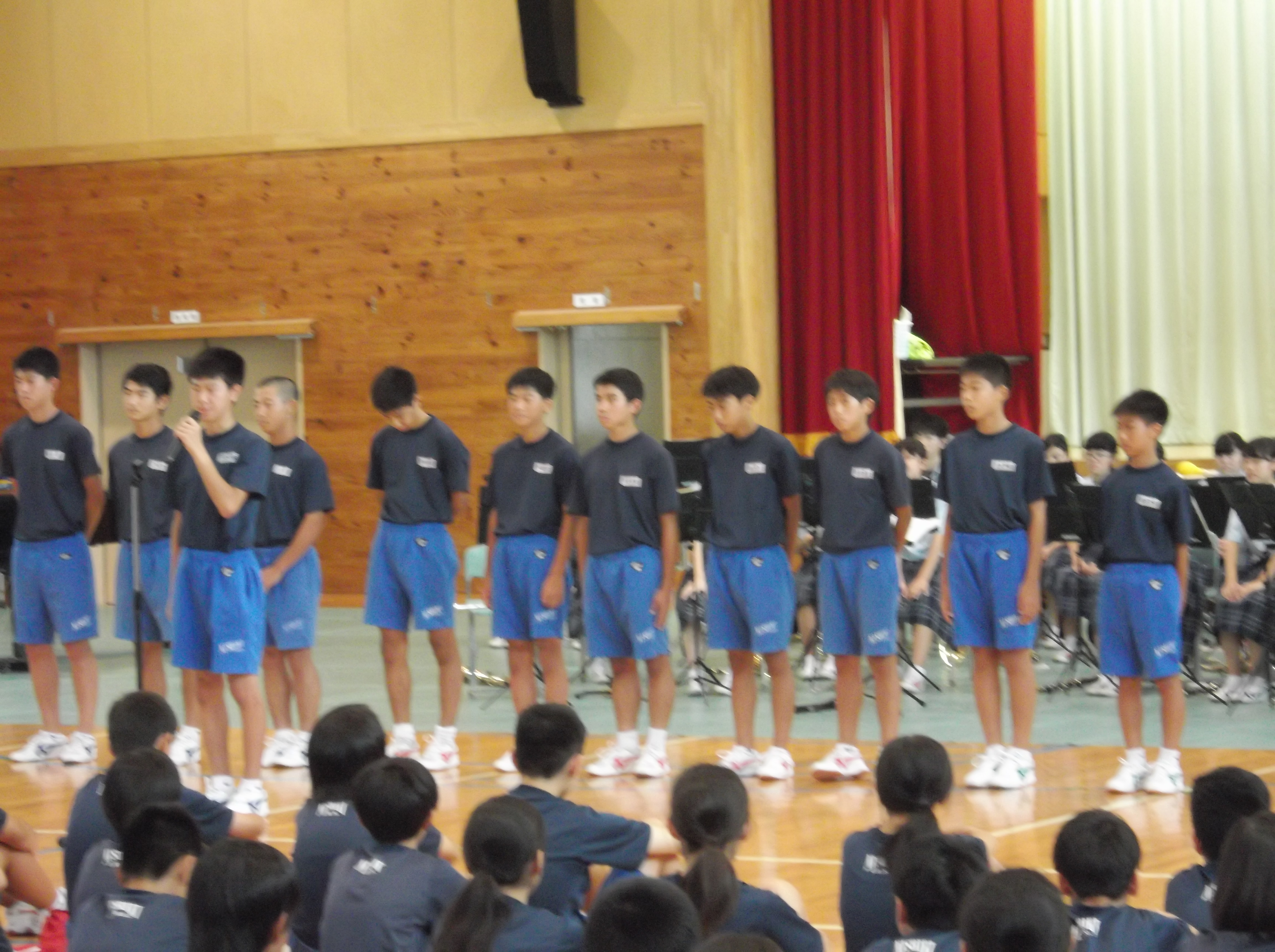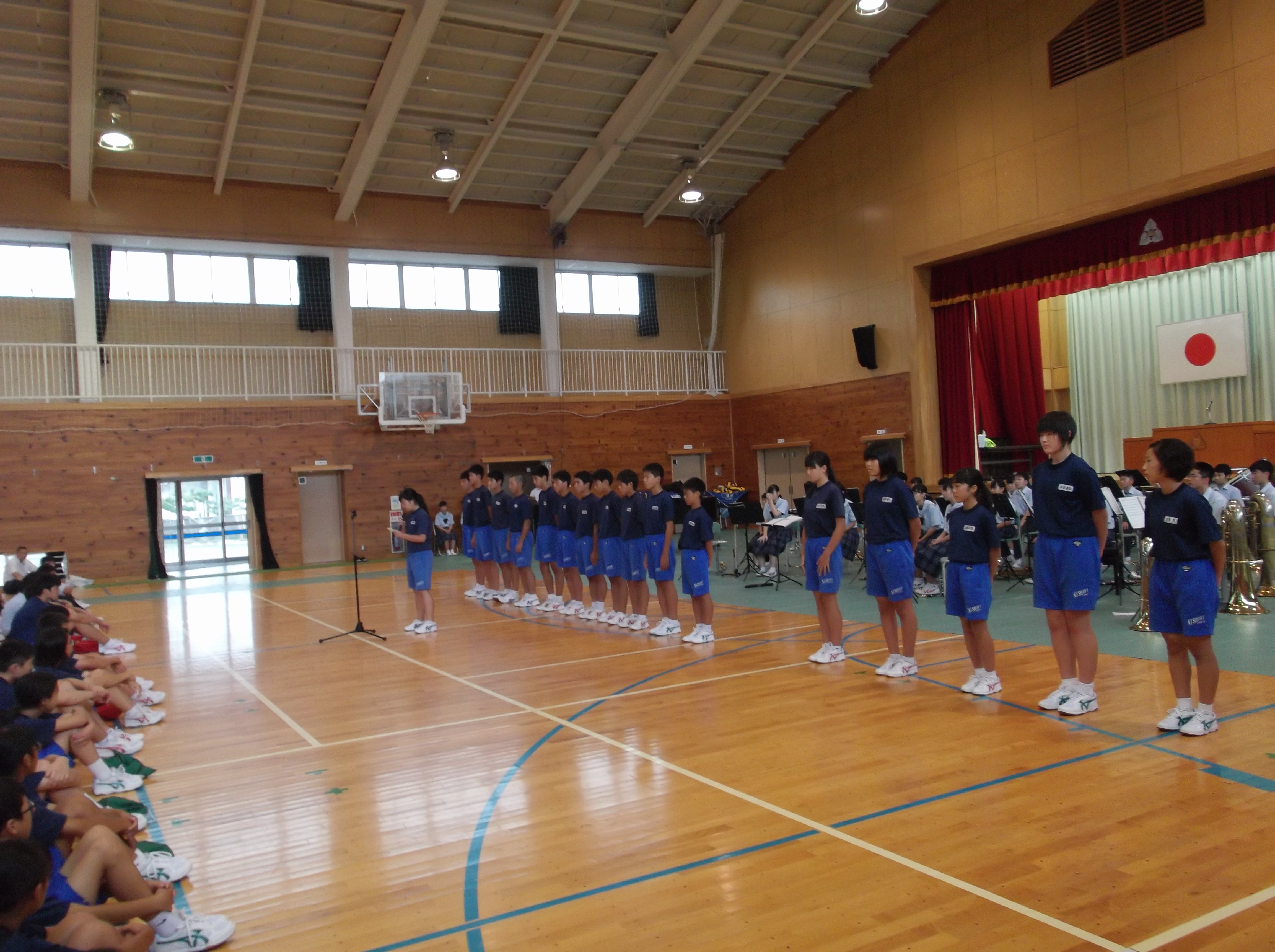 その後、それぞれの部活動の部長から、メンバーと大会への抱負が発表され、吹奏楽部の演奏が披露されました。最後に、生徒会長が生徒代表として、各部活動の練習への取組を讃え、激励しました。活躍を心から期待します。