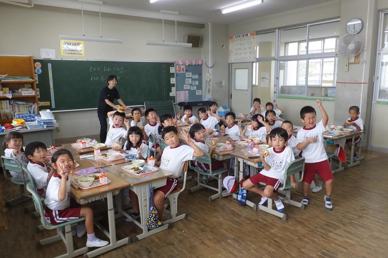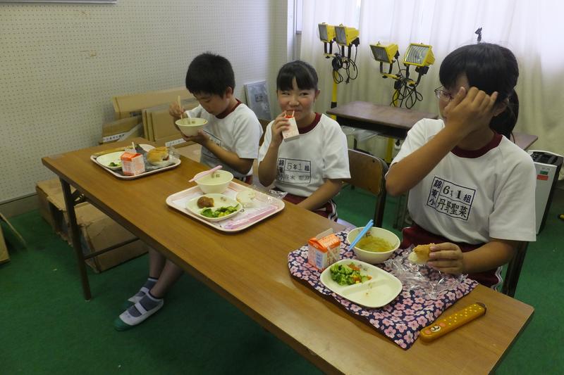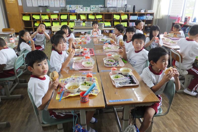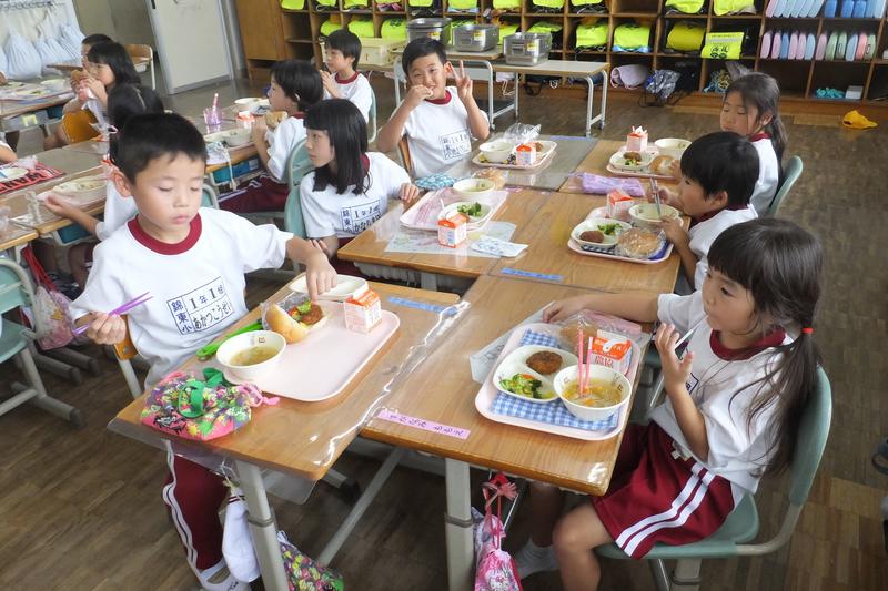 今日は、1年生と放送委員の皆さんの給食のようすを紹介します。