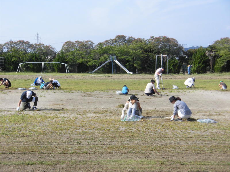 23日〈金)、24日(土)の両日に渡ってPTA奉仕作業が行われました。広い校庭に生い茂った草がみなさんの力であっという間にきれいに除草され、活動しやすいグラウンドが戻ってきました。子どもたちのためにご協力ありがとうございました。