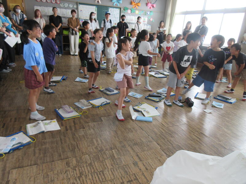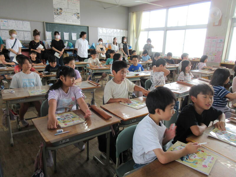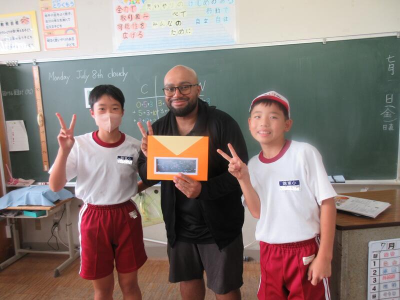 最後の授業になるということで、児童からメッセージやプレゼントがあり、シェズ先生も喜んでいました。