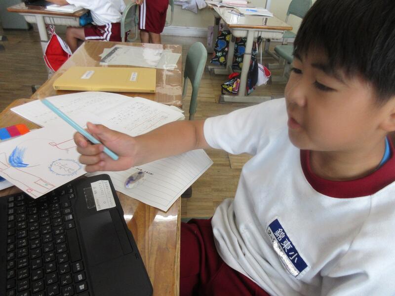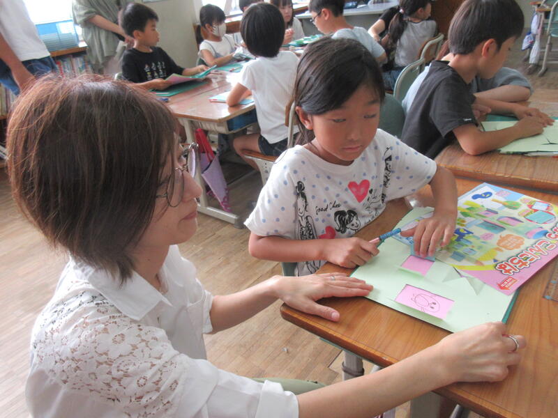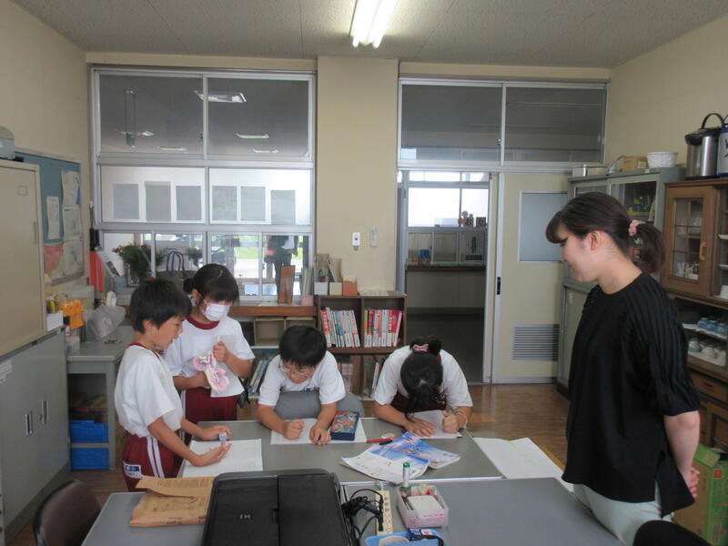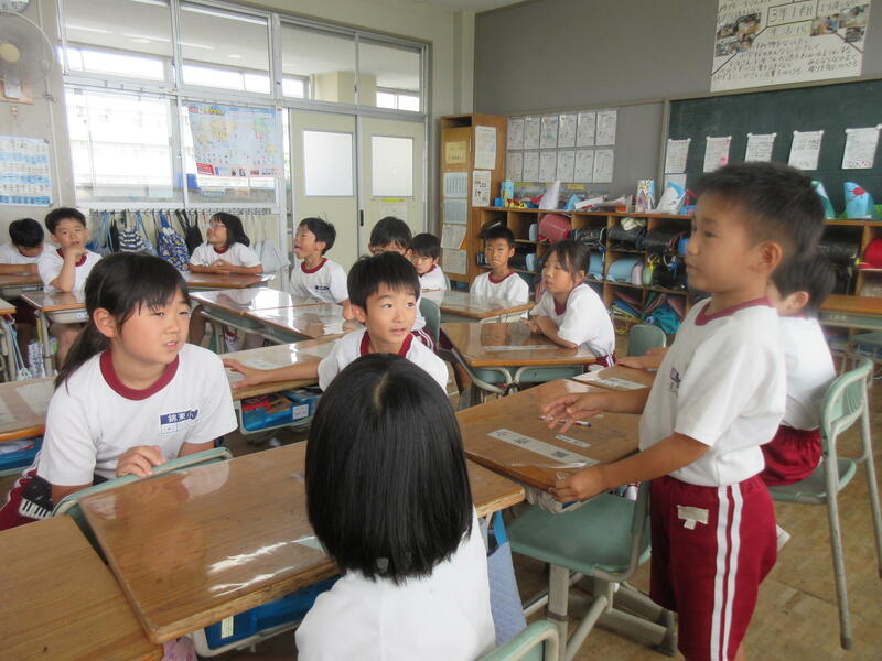 「好きな教科は何ですか」「好きな動物は何ですか」「好きなキャラクターは何ですか」等、先生方にインタビューをしてその結果を新聞にまとめる学習です。