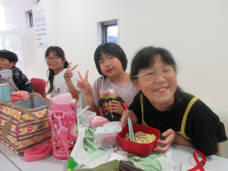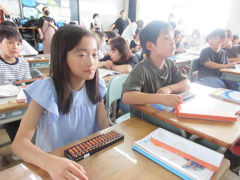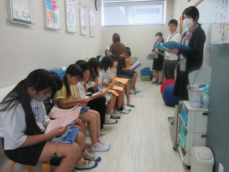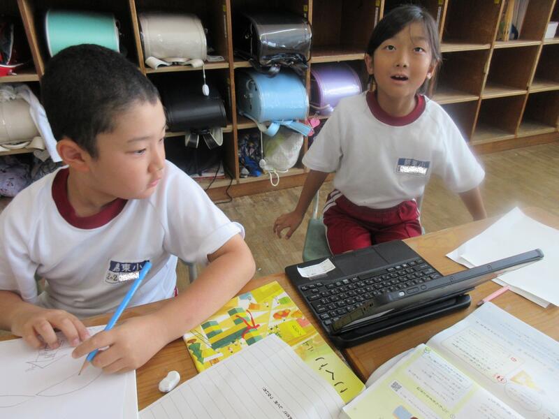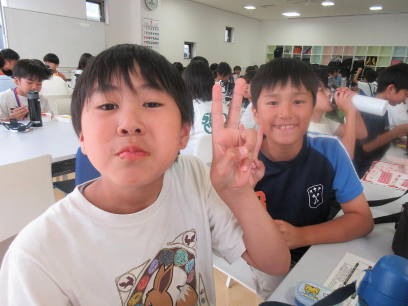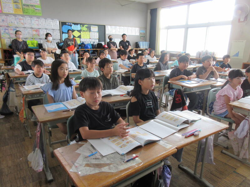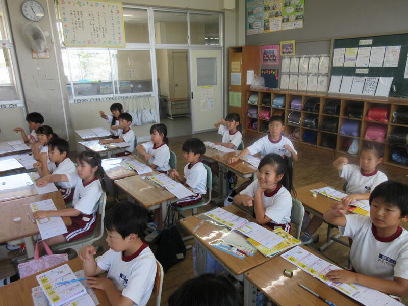 前の時間が水泳だったため、まだ髪が乾いていない児童も・・・