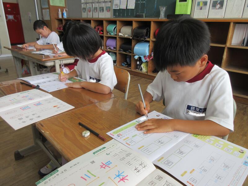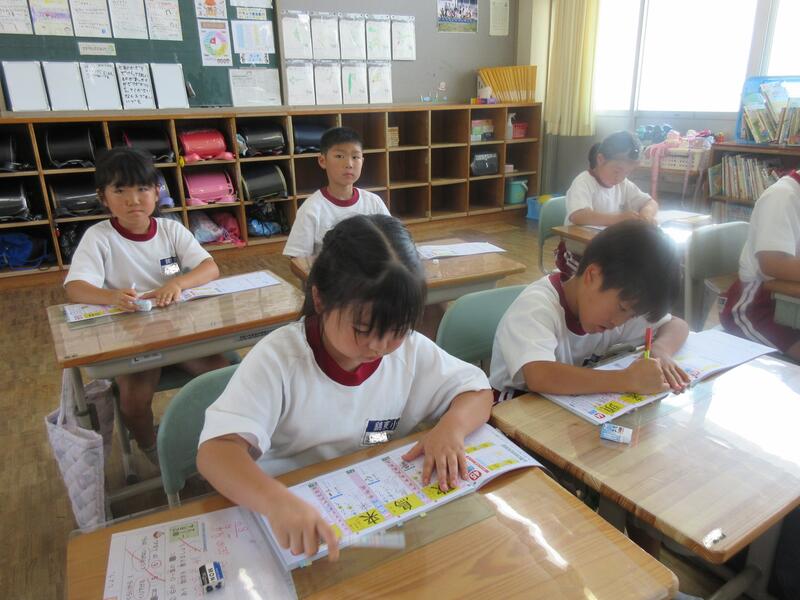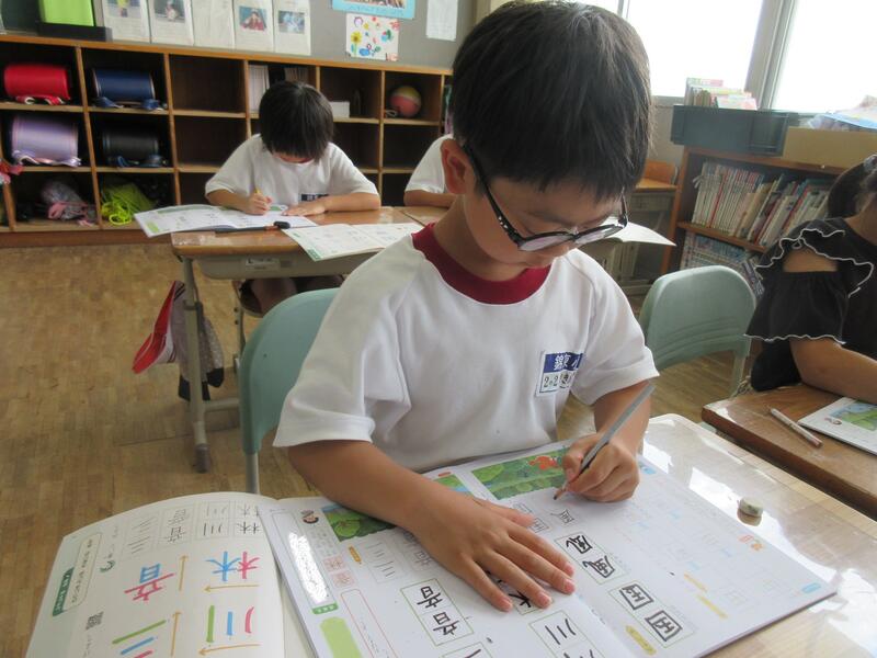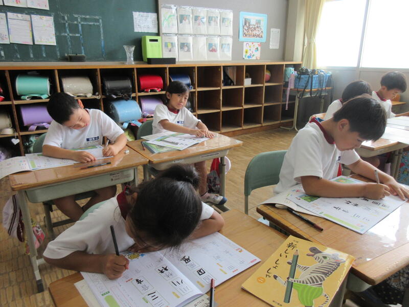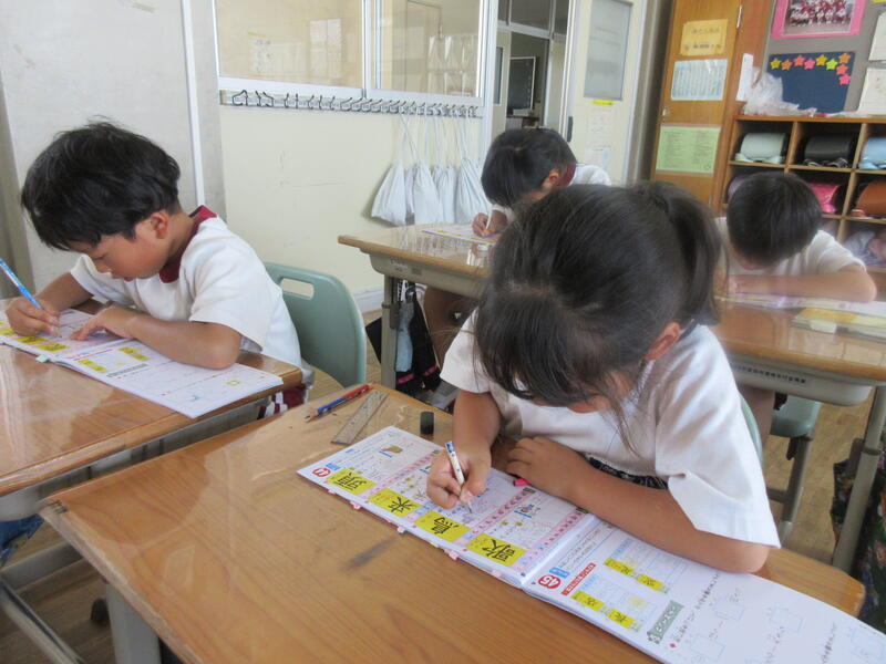 4校時 2-2は書写の時間 ノートに正しい筆順を意識しながら視写しています