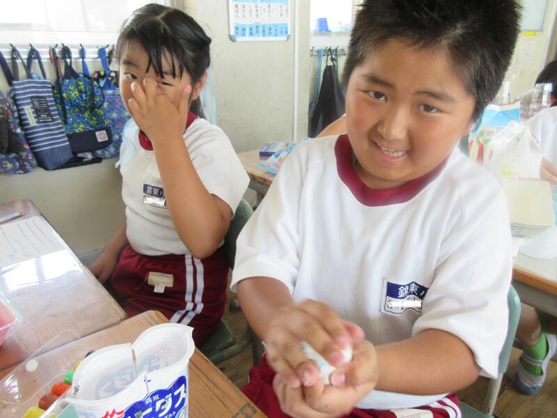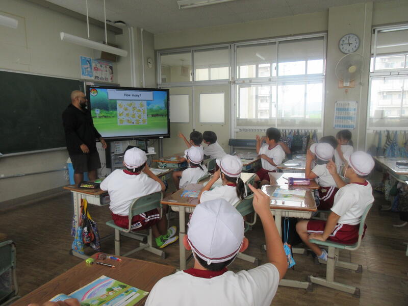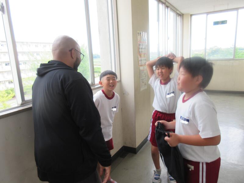 シェズ先生からは昼の放送で全校児童に、日本語と英語の二本立てであいさつがありました。