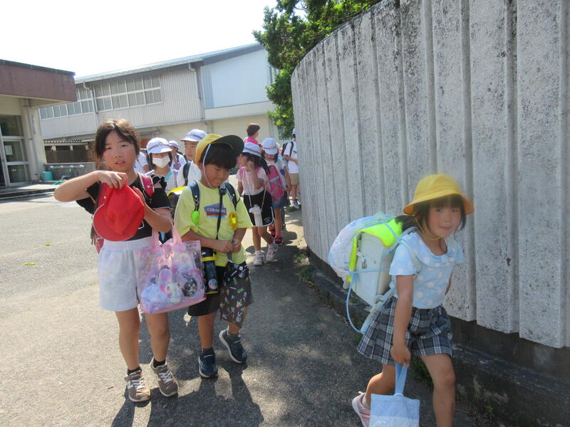 一斉下校、担当から熱中症対策の話を聞いてから元気に「さようなら!」