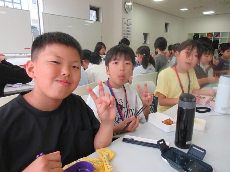 ランチタイムはお弁当を食べながら、緊張がほぐれた表情です