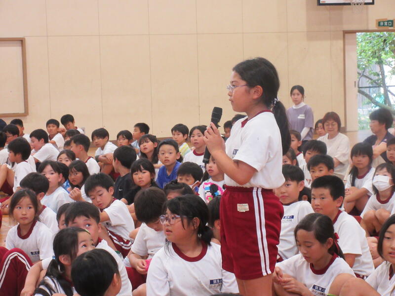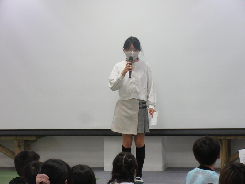 3人の代表児童が 「水族館で働きたい」「みんなが明るく幸せになってほしい」「デザイナーになりたい」と、発表していました。