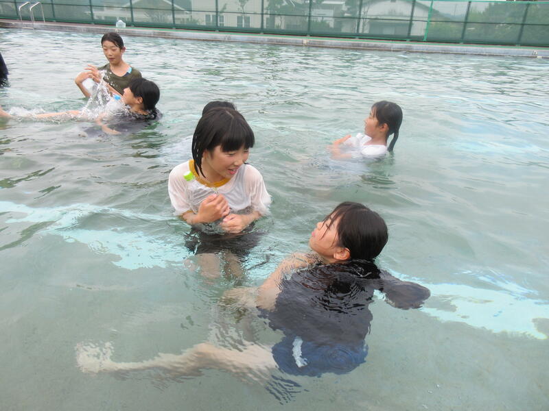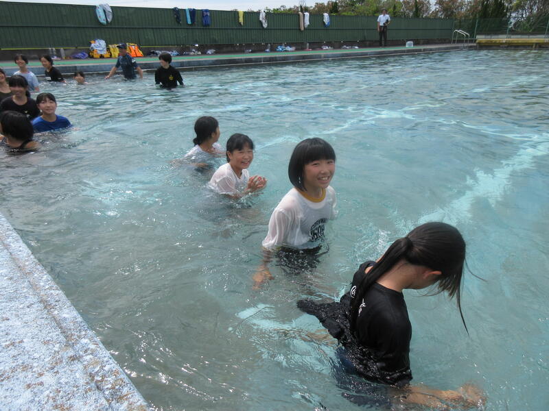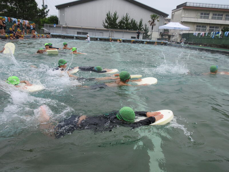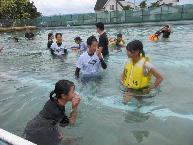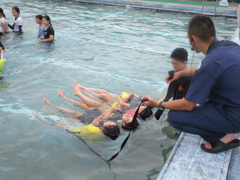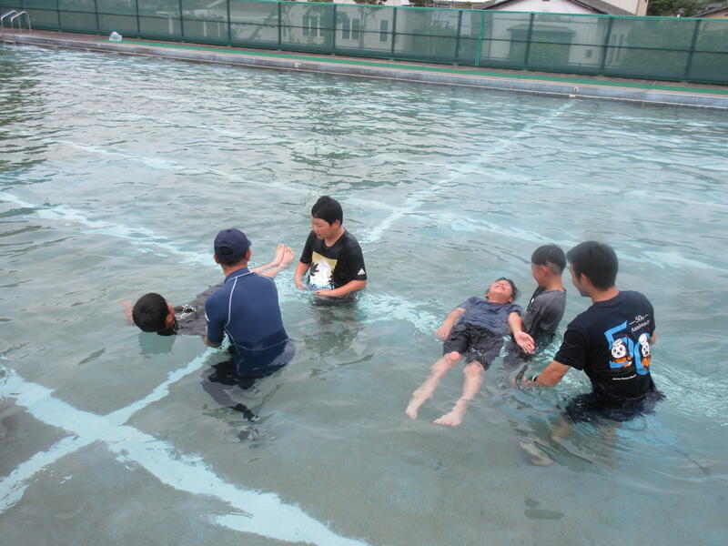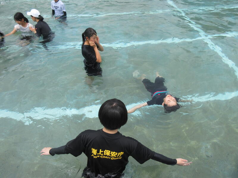 何も持たない状態で水面に浮かんだりペットボトルやライフジャケットを使って長く浮かんだりする練習を行いました